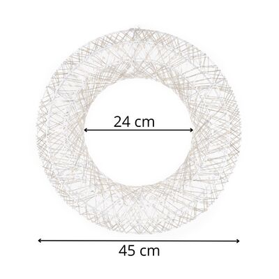 Základom dekorácie je pevná kovová konštrukcia , ktorá zaisťuje tvarovú stálosť a dlhú životnosť. Vďaka krytiu IP44 je kruh vhodný aj na vonkajšie použitie, napríklad na dvere, okná, fasádu alebo terasu. Bezpečné nízke napätie umožňuje bezstarostné používanie v domácnosti aj v okolí detí.