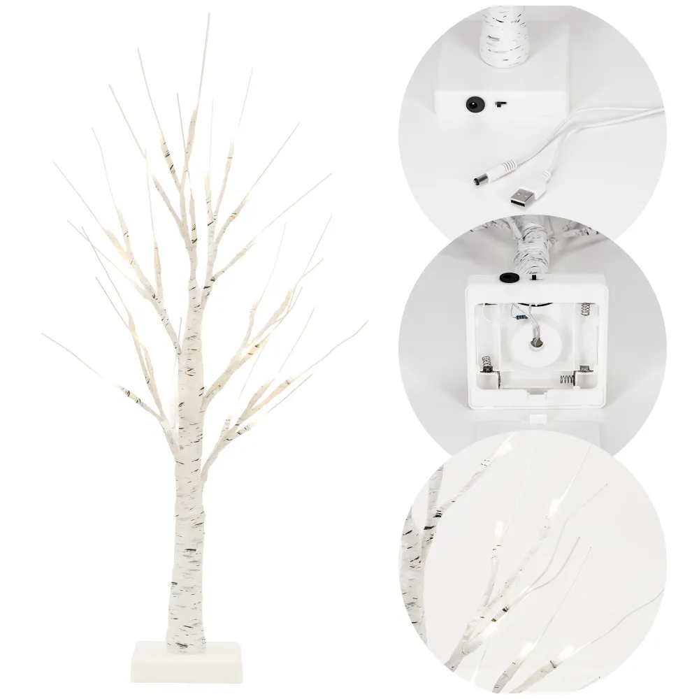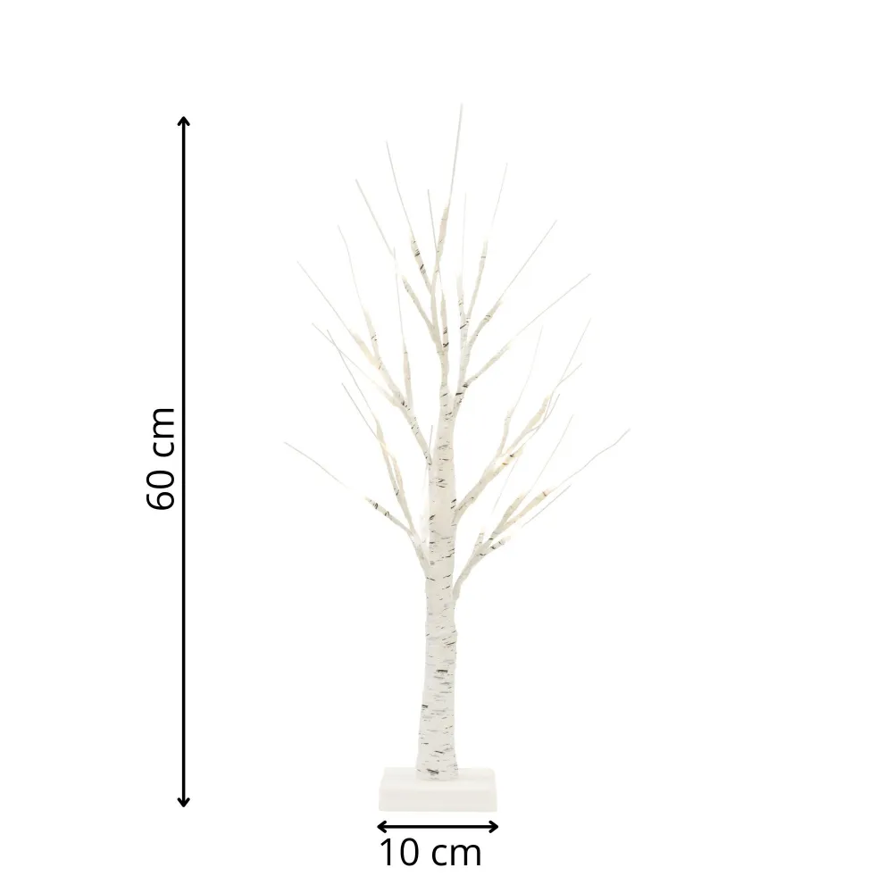 LED stromček breza s teplým bielym osvetlením. Slúži na vytvorenie útulnej a sviatočnej atmosféry v interiéri. Ideálna ako ozdoba na stôl, komodu alebo parapet. Elegantný doplnok pre vianočnú aj celoročnú dekoráciu. Výška 60 cm, IP20, 25 LED, napájací kábel 1 m.