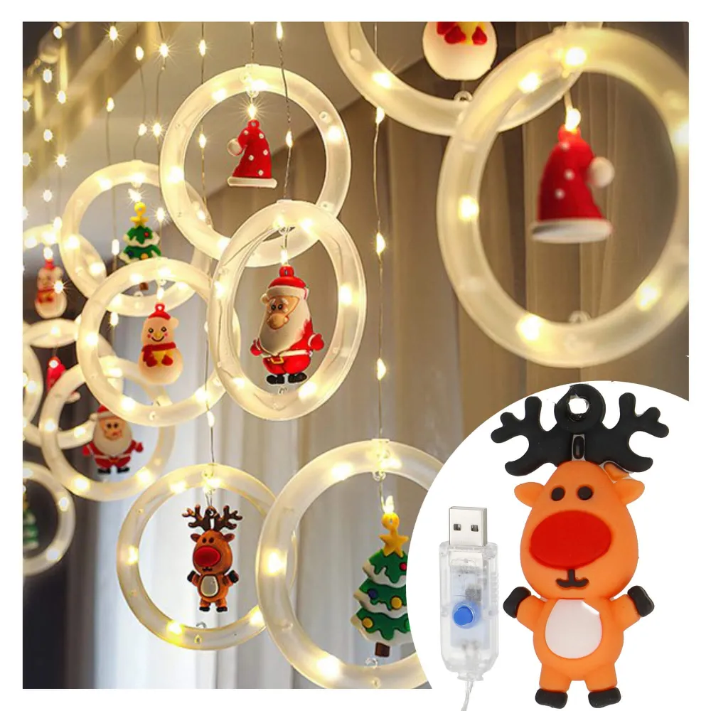 LED svetelná záclona s ozdobnými krúžkami a 8 svetelnými funkciami vrátane efektu záblesku. Bezpečné napätie, napájanie cez USB, ultra úsporné nano led diódy. Vnútorné aj vonkajšie použitie, vodeodolné prevedenie, krytie IP44. Rozmery svetelnej časti 3x0,8 m, napájací kábel 2 m. Farba svetla teplá biela, 110 ľad.