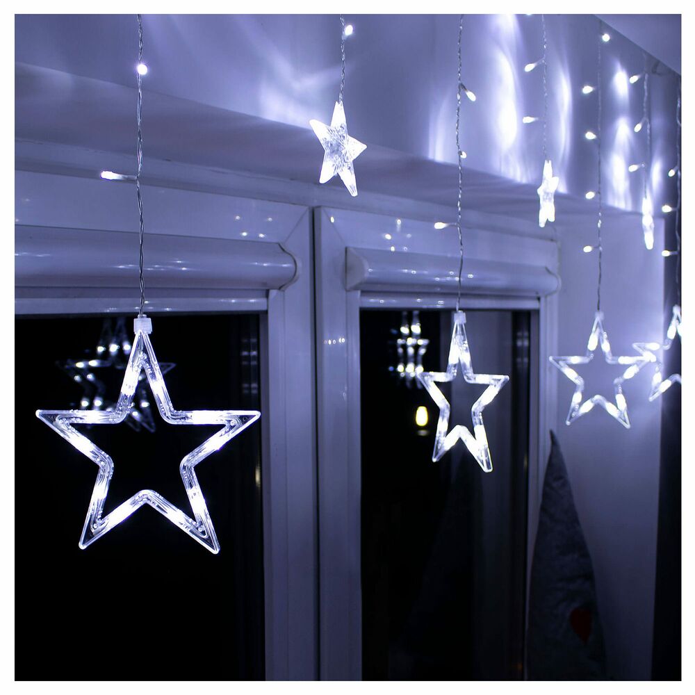 LED svetelná záclona s prekrásnymi hviezdami. Ultra úsporné ľad diódy, 8 svetelných režimov vrátane efektu záblesku, transparentný kábel. Vnútorné použitie, krytie IP20. Rozmery svetelnej časti 2,5x0,7 m, napájací kábel 1,7 m. Farba studená biela, 138 ľad.