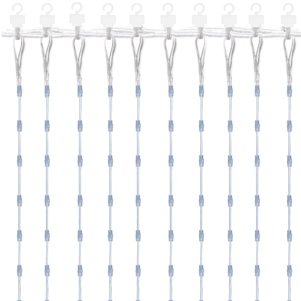 LED svetelná záclona so stovkami žiariacich bodov a 8 svetelnými funkciami vrátane efektu záblesku. Diaľkové ovládanie, háčiky na zavesenie, ultra úsporné ľad diódy. Vnútorné aj vonkajšie použitie, vodeodolné prevedenie, krytie IP44. Rozmery svetelnej časti 3x3 m, napájací kábel 1,5 m. Farba studená biela, 300 ľad.