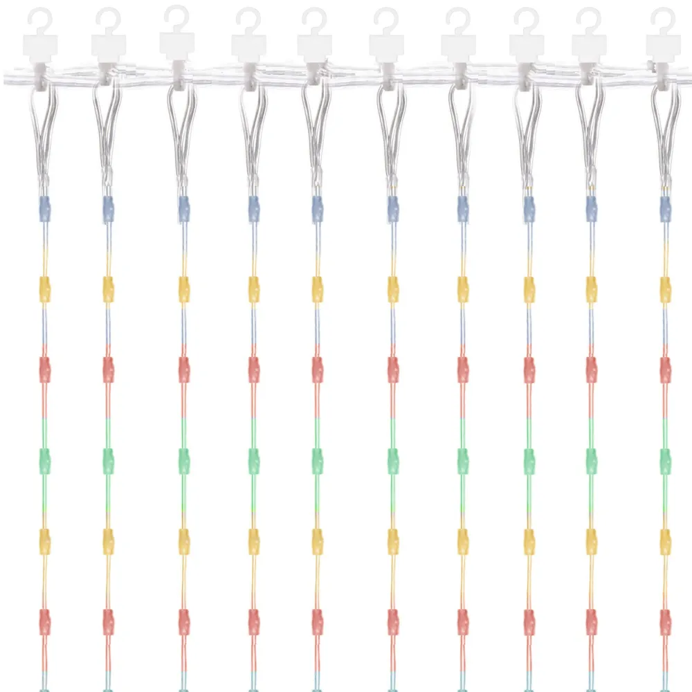 LED svetelná záclona so stovkami žiariacich bodov a 8 svetelnými funkciami vrátane efektu záblesku. Diaľkové ovládanie, háčiky na zavesenie, ultra úsporné ľad diódy. Vnútorné aj vonkajšie použitie, vodeodolné prevedenie, krytie IP44. Rozmery svetelnej časti 3x3 m, napájací kábel 1,5 m. Farba multicolor, 300 ľad.