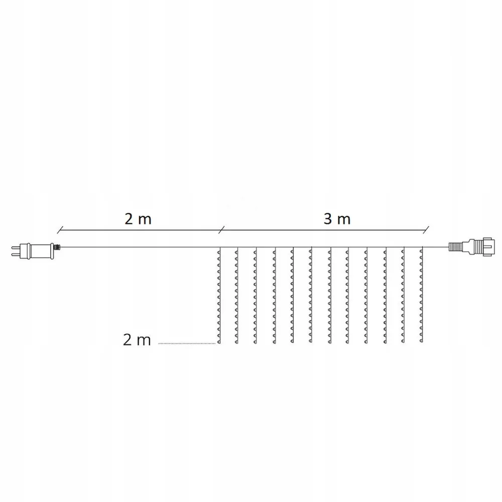 LED svetelná záclona so stovkami žiariacich bodov a 8 svetelnými funkciami. Diaľkové ovládanie, pamäť posledného zvoleného režimu. Úsporné ľad diódy, vnútorné použitie, krytie IP20. Rozmery svetelnej časti 3x2 m, napájací kábel 2 m. Farba teplá biela, 200 ľad.