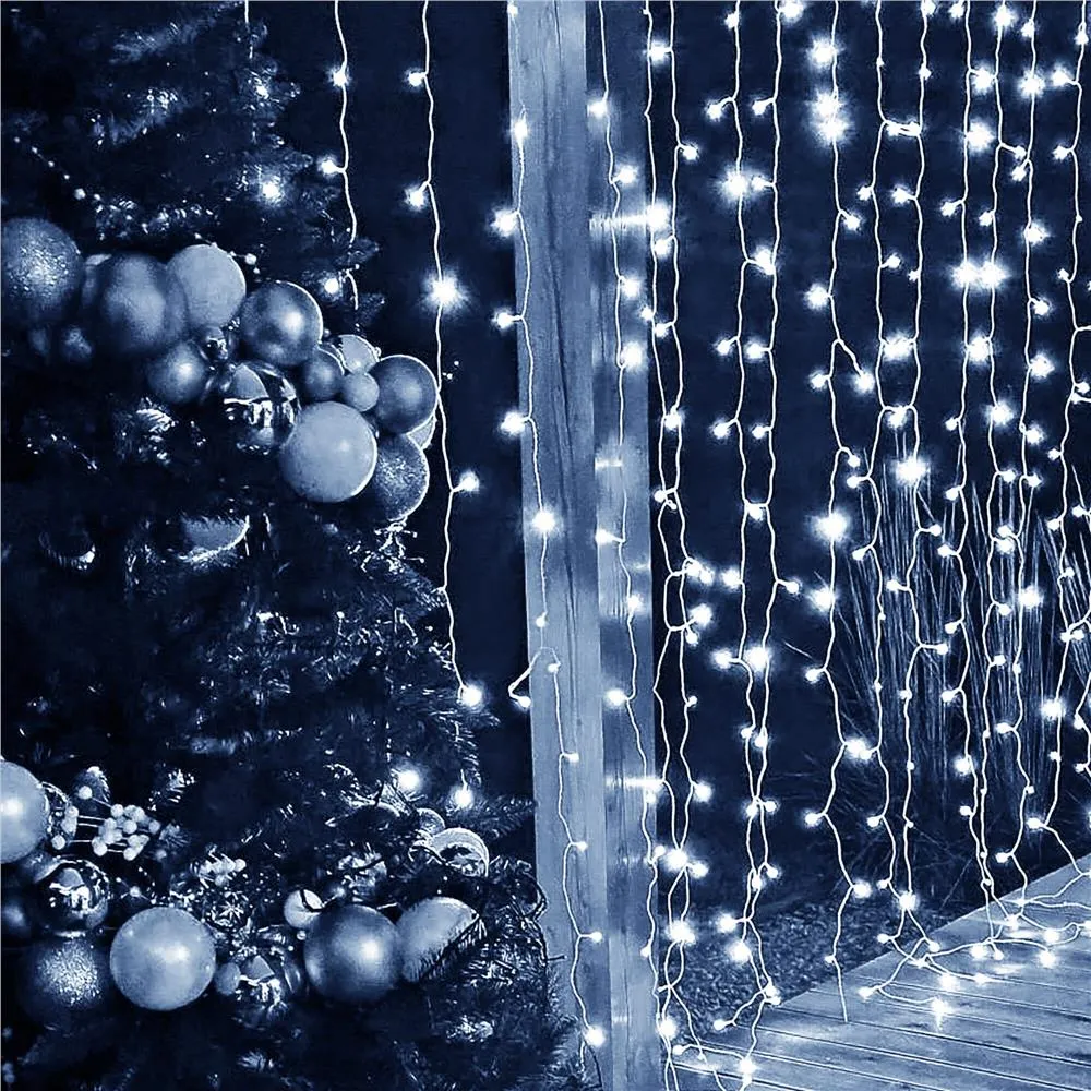 LED svetelná záclona so stovkami žiariacich bodov a 8 svetelnými funkciami. Diaľkové ovládanie, pamäť posledného zvoleného režimu. Úsporné ľad diódy, vnútorné použitie, krytie IP20. Rozmery svetelnej časti 3x3 m, napájací kábel 2 m. Farba studená biela, 300 ľad.