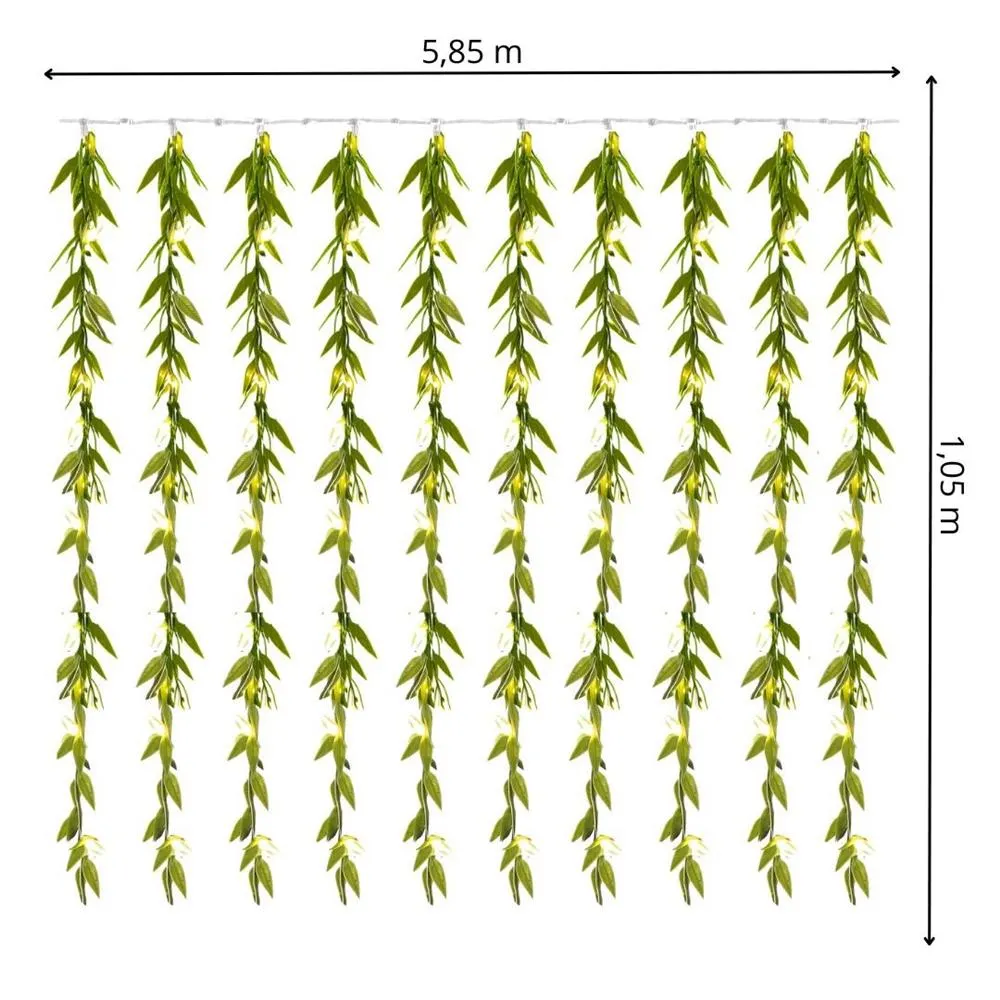 Úchvatná svetelná záclona s ozdobnými lístkami. Ultra úsporné led diódy, 8 svetelných režimov vrátane efektu záblesku, transparentný kábel. Vnútorné aj vonkajšie použitie, krytie IP44. Rozmery svetelnej časti 5,85x1,05 m, napájací kábel 3 m. Farba teplá biela, 200 ľad.