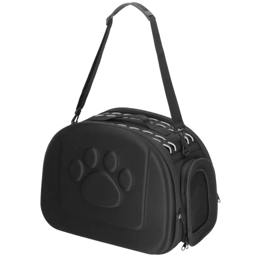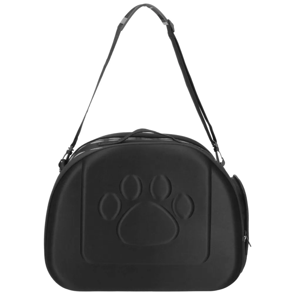 Prepravná taška SPRINGOS PA0247 (veľ. M, do 10 kg) je ideálna pre psy, mačky, šteňatá, králiky alebo menšie hlodavce. Prepravka má pevné bočné steny s motívom labky a poskytuje pohodlie vďaka mäkkej EVA pene. Veľký vstupný otvor a dvojcestný zips umožňujú ľahký prístup. Je vyrobená z odolného, vystuženého materiálu so spevneným dnom a vyberateľnou podložkou. Výborné odvetrávanie zaisťujú početné priezory. Taška je ľahko prenosná - možno ju nosiť v ruke alebo cez rameno. Má nastaviteľný popruh a je možné ju zložiť naplocho pre úsporu miesta.