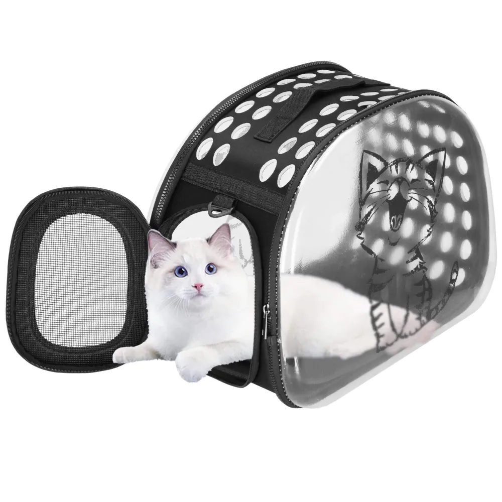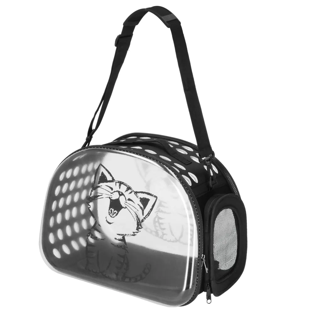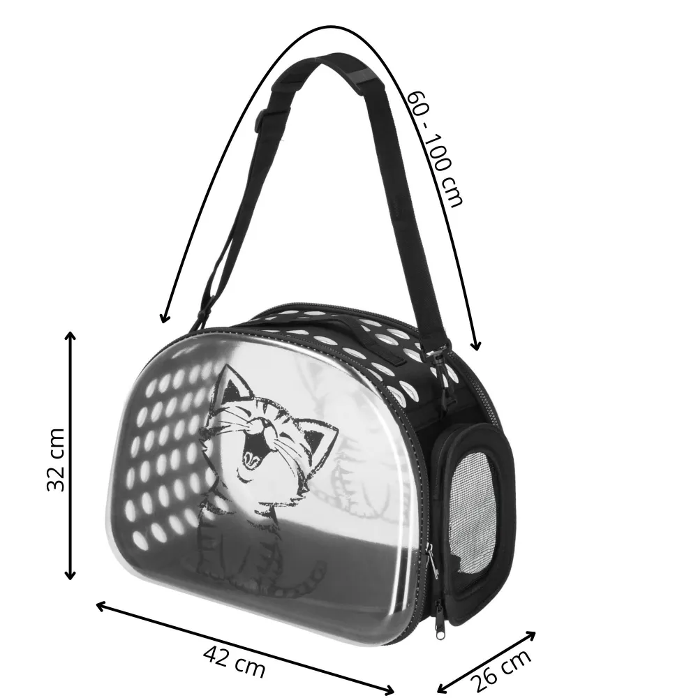 Prepravná taška SPRINGOS PA0248 (veľ. M, do 10 kg) je ideálna pre psy, mačky, šteňatá, králiky alebo menšie hlodavce. Prepravka má priehľadné bočné steny s motívom veselej mačky. Oceníte veľký vstupný otvor na dvojcestný zips, ktorý umožňuje ľahký prístup k maznáčikovi. Stredová časť tašky je vyrobená z kvalitnej EVA peny a doplnená o pevné bočnice z PVC. Dno je spevenené a vybavené vyberateľnou podložkou. Výborné odvetrávanie zaisťujú početné priezory. Taška je ľahko prenosná - možno ju nosiť v ruke alebo cez rameno. Má nastaviteľný popruh a je možné ju zložiť naplocho pre úsporu miesta.