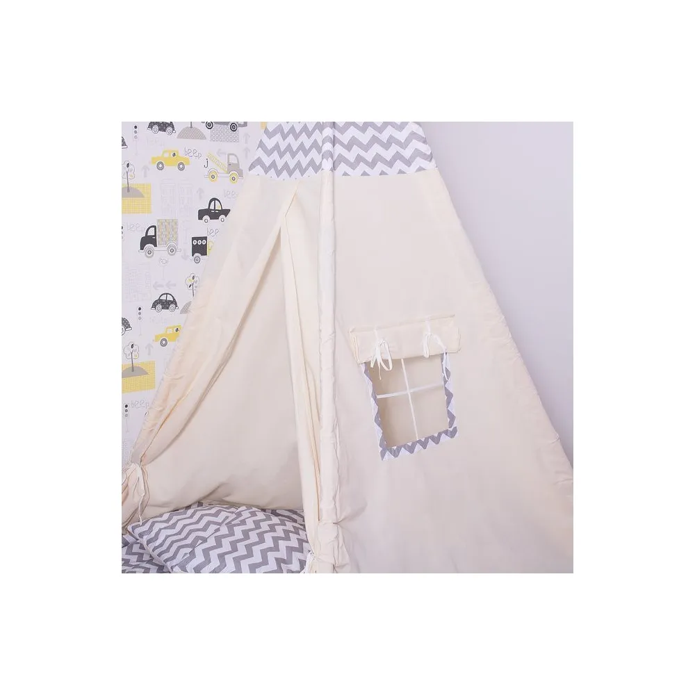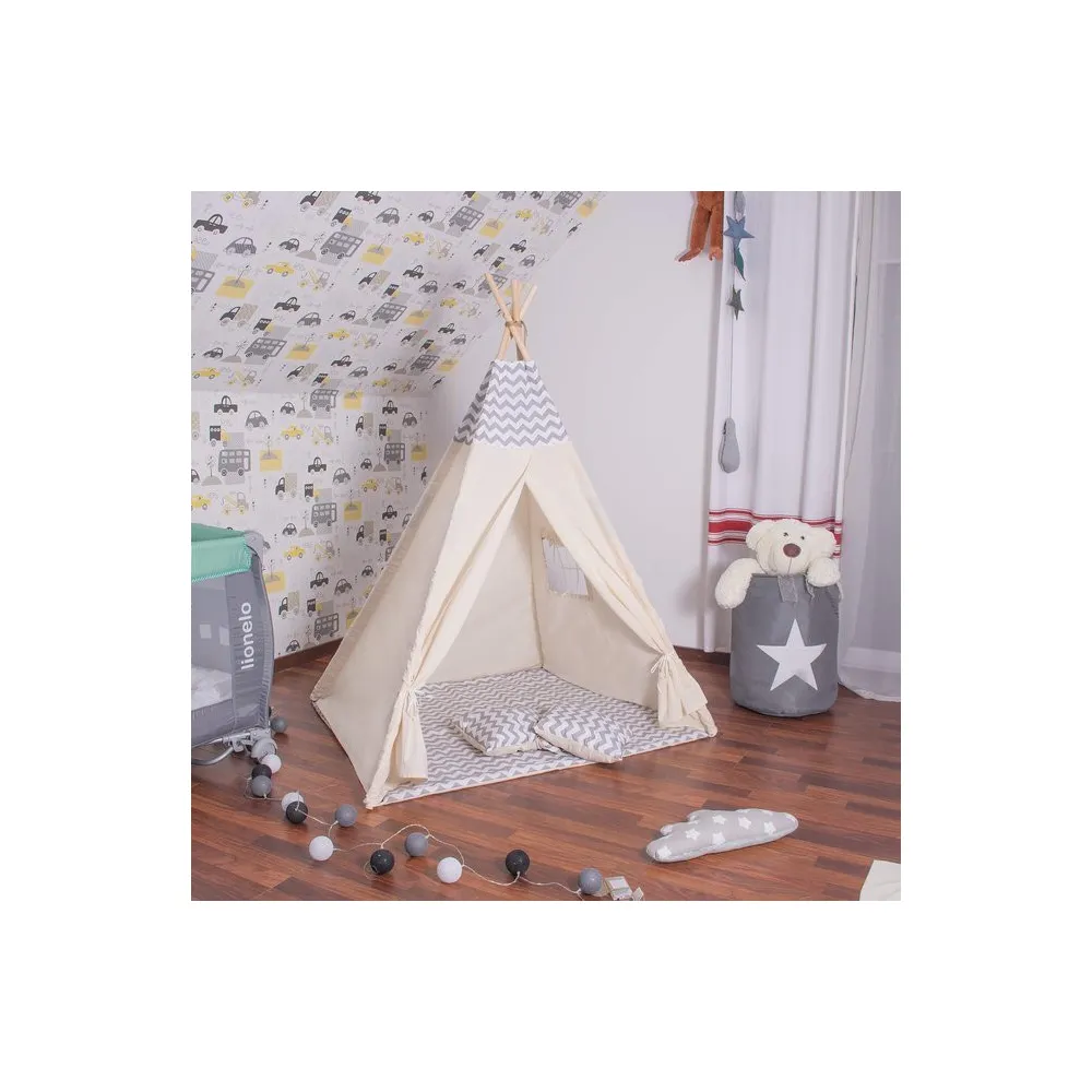 Teepee stan pre deti SPRINGOS Šedý Zigzag