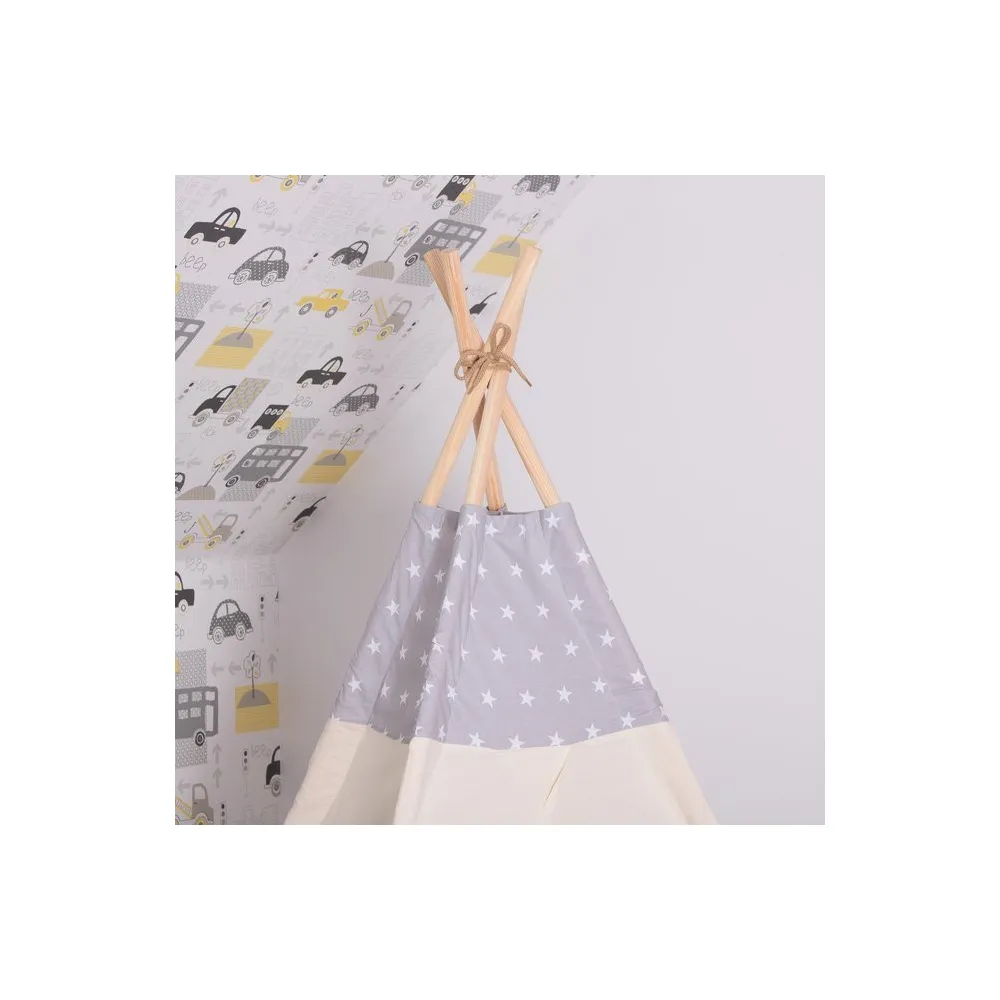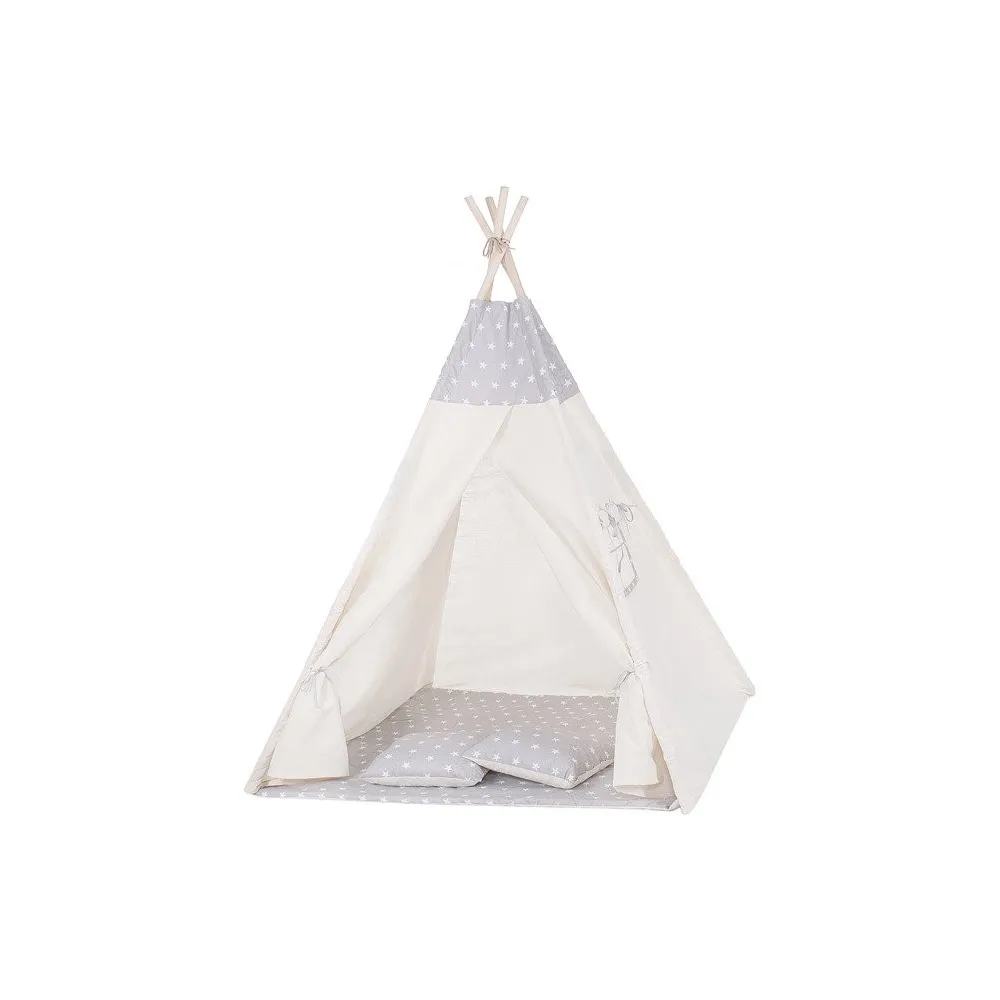 Teepee stan pre deti SPRINGOS Šedý s hviezdami