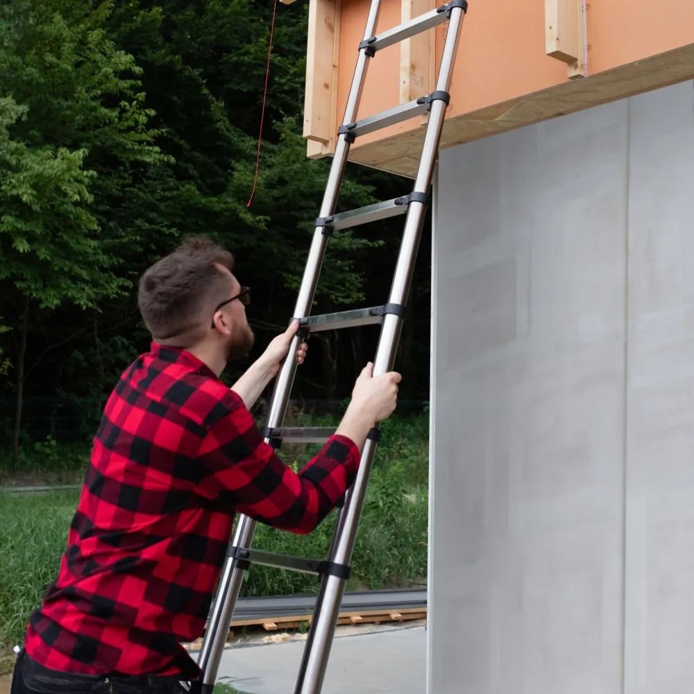 Oceľový teleskopický rebrík s pracovnou výškou až 4,90 ma maximálnou dĺžkou 3,80 m. Má 13 protišmykových priečok a hmotnosť len 12,3 kg. Ľahká a skladná konštrukcia umožňuje ľahkú manipuláciu. Nastaviteľná výška, poistka proti zovretiu prstov, široké protišmykové nožičky, nosnosť 125 kg, ergonomická rukoväť a bezpečnostný popruh proti roztvoreniu.