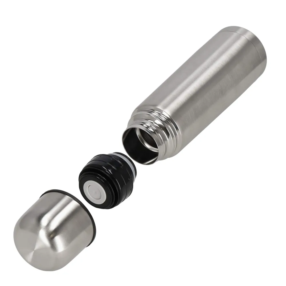 Praktická termofľaša s vákuovou izoláciou, ktorá udrží nápoje teplé alebo studené po dlhú dobu. Vďaka odolnej nerezovej oceli neabsorbuje pachy a ľahko sa čistí. Tesniaci uzáver slúži ako kelímok na pitie. Skvelá voľba na cestovanie, do práce, školy aj na výlety. Ideálne aj ako termohrnček na čaj a kávu alebo pre mamičky, ktoré potrebujú mať vždy po ruke teplú vodu na prípravu umelého mlieka. Kapacita 500 ml.