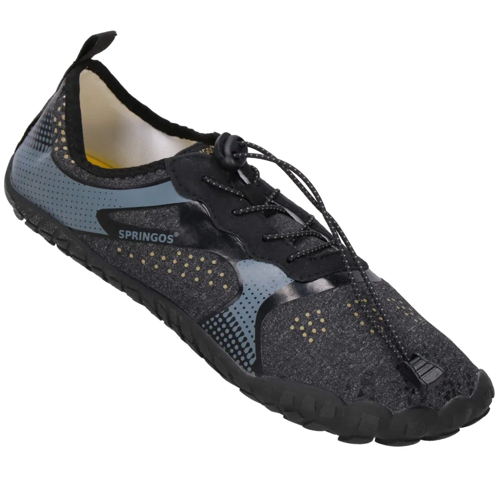 Pánske topánky do vody SPRINGOS CS0149 čierne sú skvelou voľbou pre všetkých, ktorí hľadajú pohodlnú a spoľahlivú ochranu nôh pri pobyte pri vode. Vhodné sú nielen do mora a na kamenistej pláže , ale aj pre vodné športy ako paddleboarding, šnorchlovanie alebo plávanie. Silná protišmyková podrážka zaisťuje bezpečný krok na mokrých aj klzkých povrchoch, zatiaľ čo mäkký a pružný materiál poskytuje maximálne pohodlie počas nosenia.