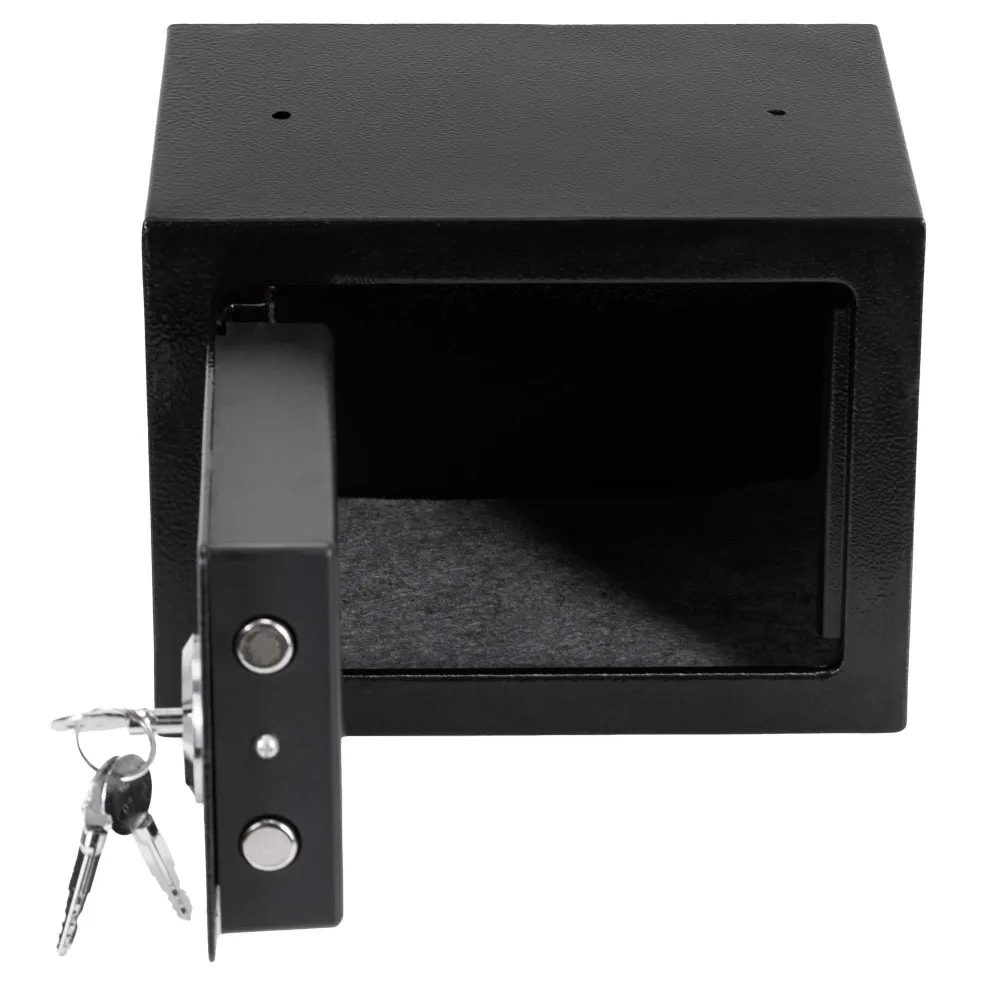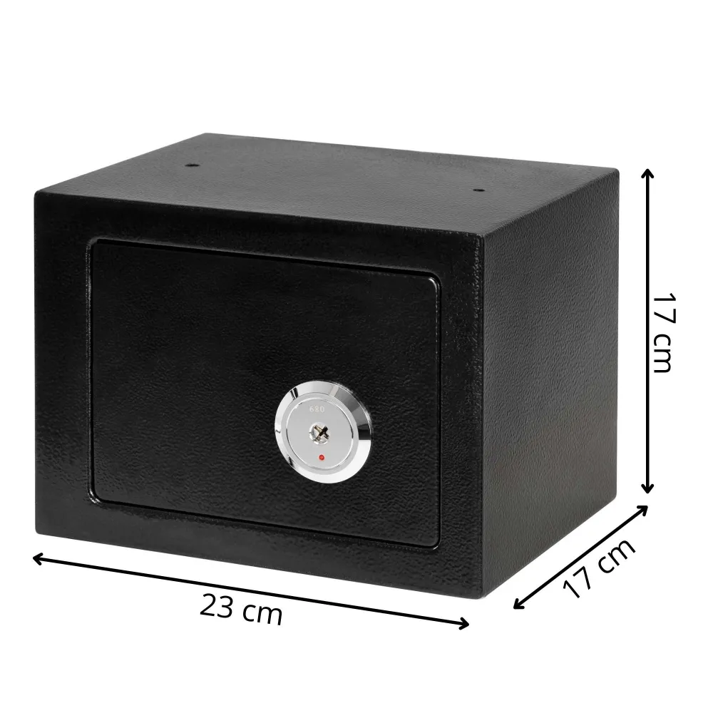 Kompaktný kovový trezor slúži na bezpečné uloženie kľúčov, drobných cenností alebo dokumentov. Pevná konštrukcia s práškovým nástrekom zvyšuje odolnosť proti poškodeniu, zatiaľ čo mechanický zámok s tromi kľúčmi zaisťuje spoľahlivé uzamknutie. Vnútorný priestor je opatrený plstenou podložkou a možnosť montáže na stenu alebo podlahu zvyšuje úroveň zabezpečenia.