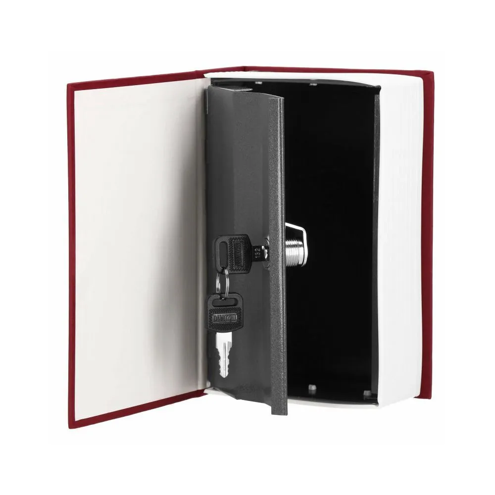 Kovová bezpečnostná schránka na kľúč napodobňujúca bežnú knihu. Rozmery 16x11,5x5,5 cm. Originálny design s dômyselným maskovaním. Detailné spracovanie, odolné a bezpečné prevedenie. Perfektné miesto na uloženie hotovosti alebo iných cenností.