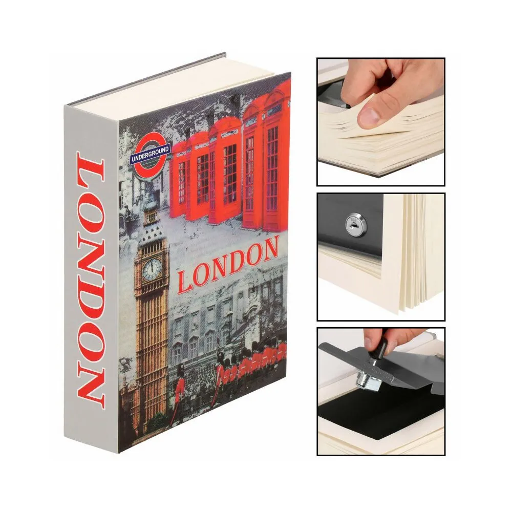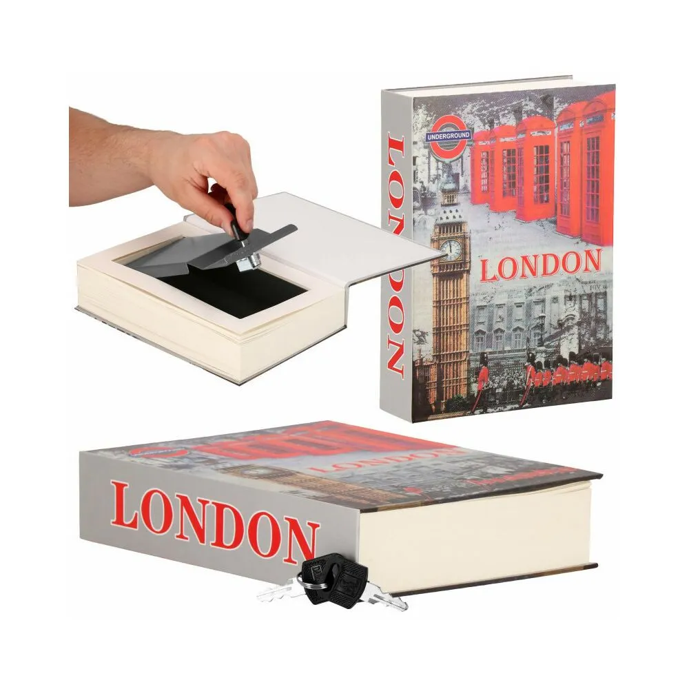Trezor má pevnú kovovú schránku so zámkom a dvoma kľúčmi. Vonkajší obal je z plastu, detailne spracovaný do podoby knihy o Londýne. Prístup k trezoru je veľmi jednoduchý, ako keby ste chceli otvoriť bežnú knihu.