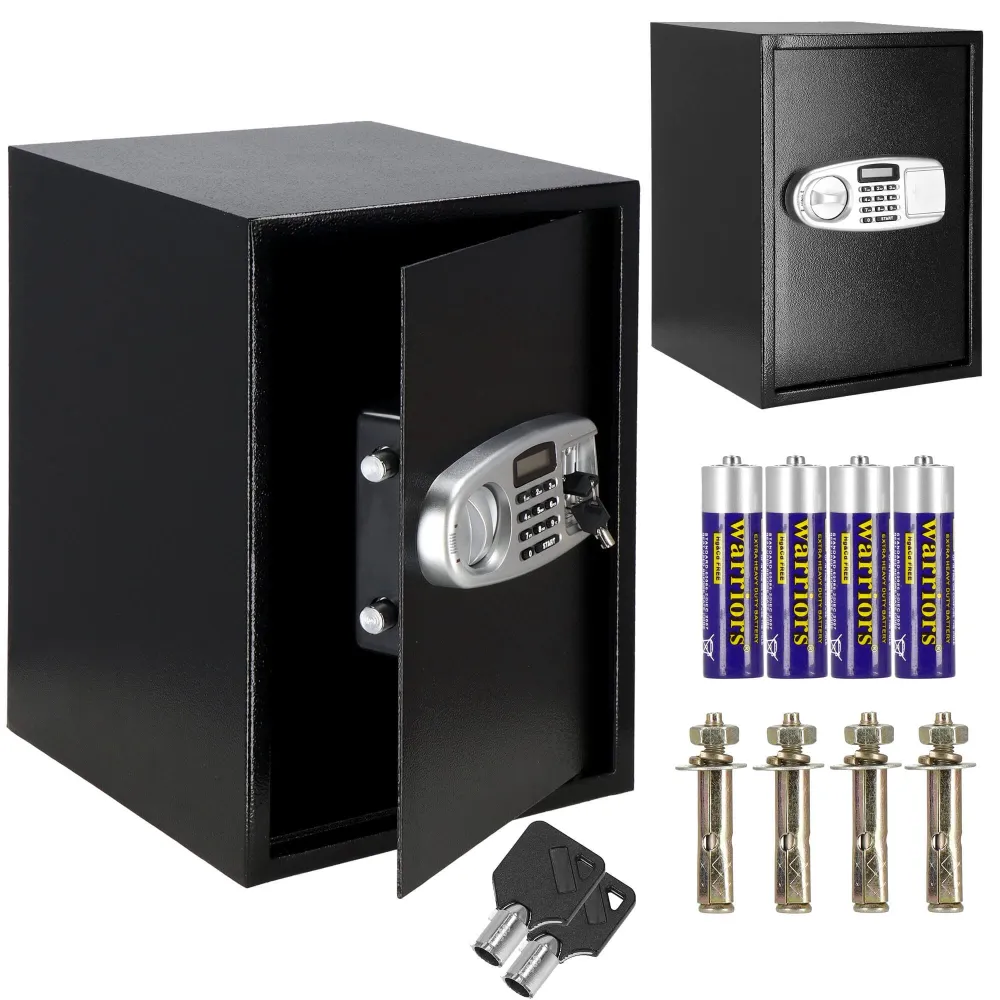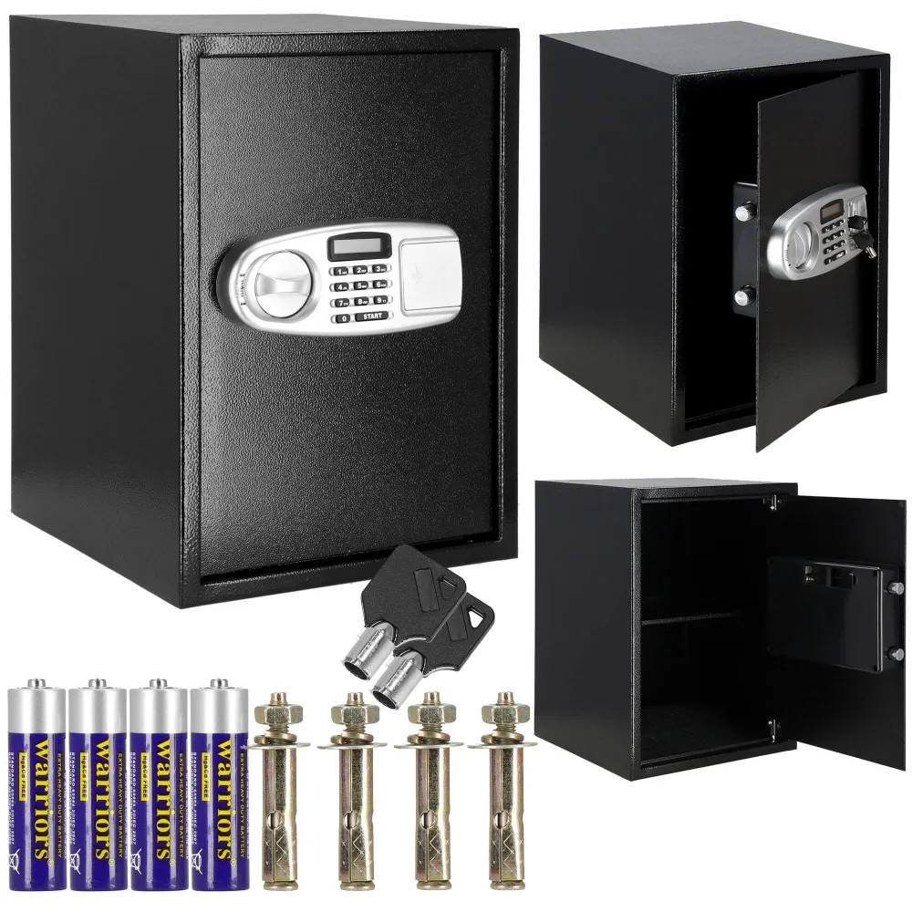 Bezpečnostný trezor na kód s možnosťou otvorenia pomocou záložného kľúča. Vhodný na uchytenie do steny, do nábytku, na stenu alebo k podlahe. Trezor má precízny dvojbodový systém zamykania, odolnú hrubostennú konštrukciu a bezpečnostnú poistku uzamknutia. Vnútri má plstennú podložku. Súčasťou dodávky sú 2 záložné kľúče, batérie a kovové hmoždinky. Ideálne miesto kde bezpečne schovať svoje cennosti, ako sú kľúče, doklady, šperky alebo peniaze.
