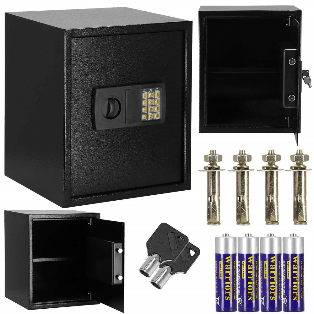 Bezpečnostný trezor na kód s možnosťou otvorenia pomocou záložného kľúča. Vhodný na uchytenie do steny, do nábytku, na stenu alebo k podlahe. Trezor má precízny dvojbodový systém zamykania, odolnú hrubostennú konštrukciu a bezpečnostnú poistku uzamknutia. Vnútri má plstennú podložku. Súčasťou dodávky sú 2 záložné kľúče, batérie a kovové hmoždinky. Ideálne miesto kde bezpečne schovať svoje cennosti, ako sú kľúče, doklady, šperky alebo peniaze.