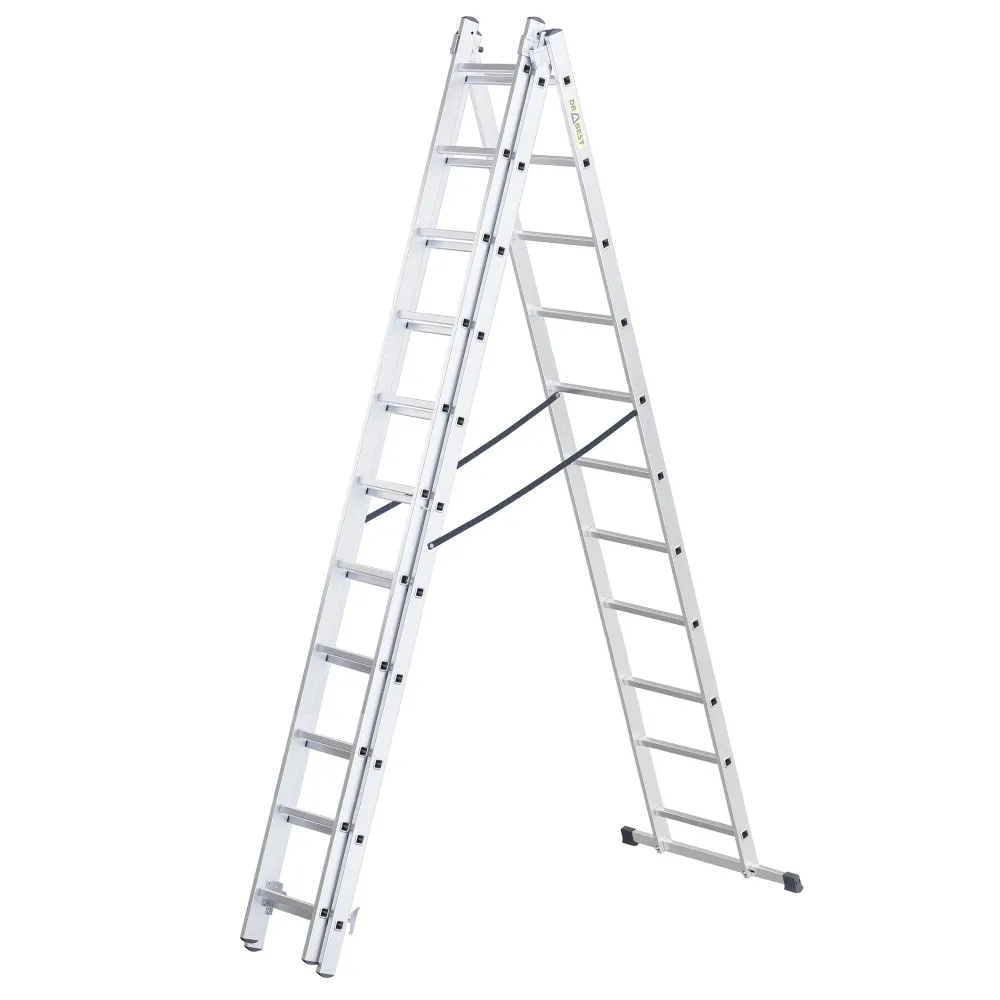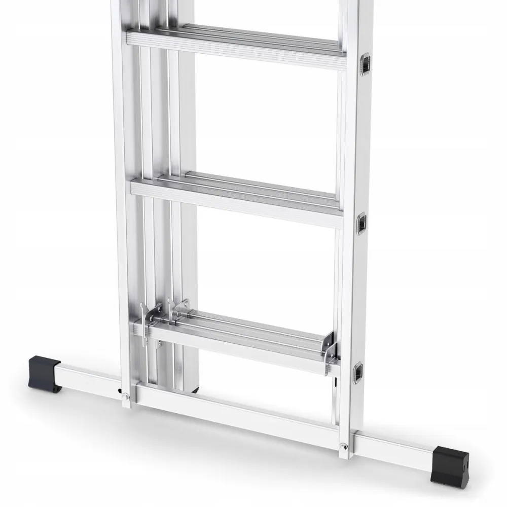 Viacúčelový hliníkový rebrík so stabilizátorom , 3x11 priečok, max. pracovná výška 6,55 m, nosnosť 150 kg. Certifikácia TÜV Rheinland, EN 131 pre domáce použitie.