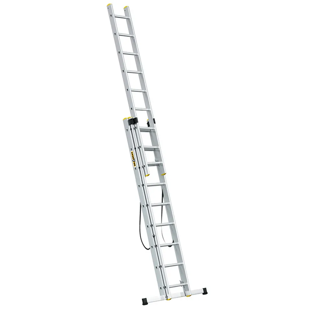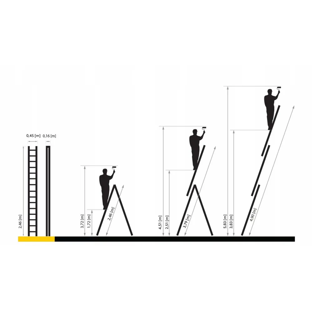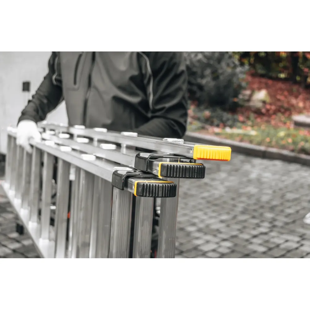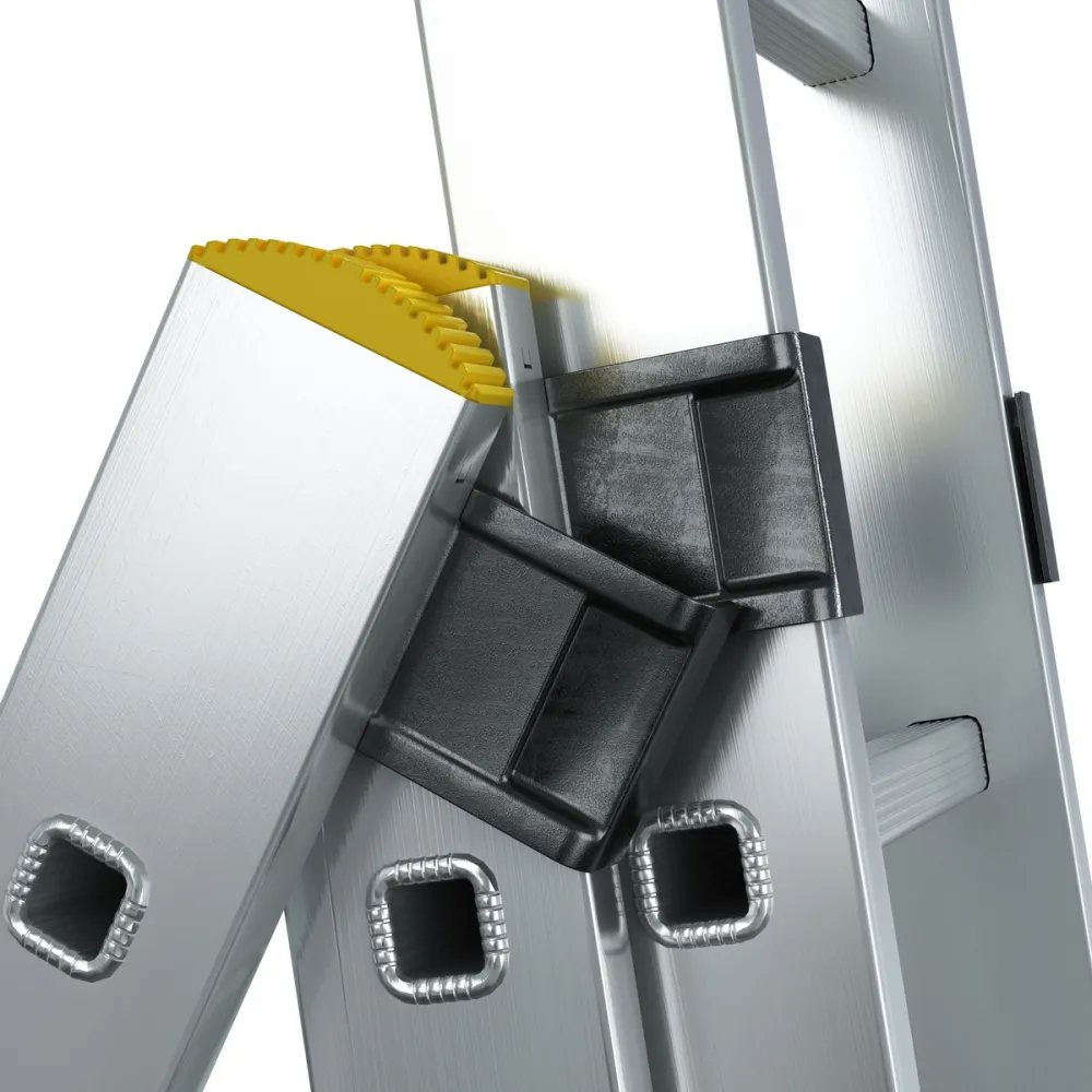 Profesionálny viacúčelový rebrík so stabilizátorom , 3x9 priečok, max. pracovná výška 5,84 m, nosnosť 150 kg. Certifikácia TÜV Rheinland, EN 131 pre profi použitie.