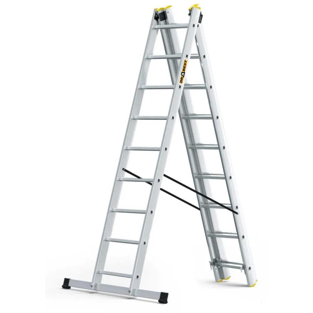 Hliníkový rebrík DRABEST DW3-9 PRO je vhodný na každodenné intenzívne používanie v priemysle, na stavbe a ďalších náročných odboroch vyžadujúcich nekompromisnú kvalitu. Rebrík spĺňa prísne bezpečnostné normy podľa EN 131 a je certifikovaný nemeckou skúšobňou TÜV Rheinland.