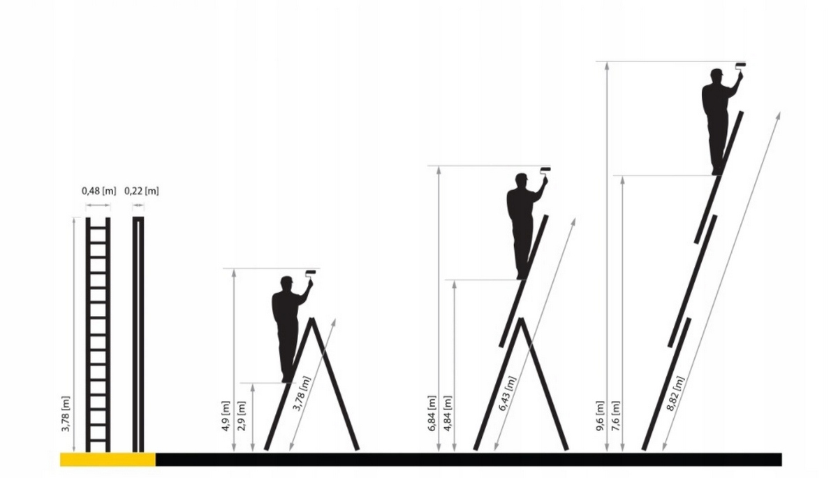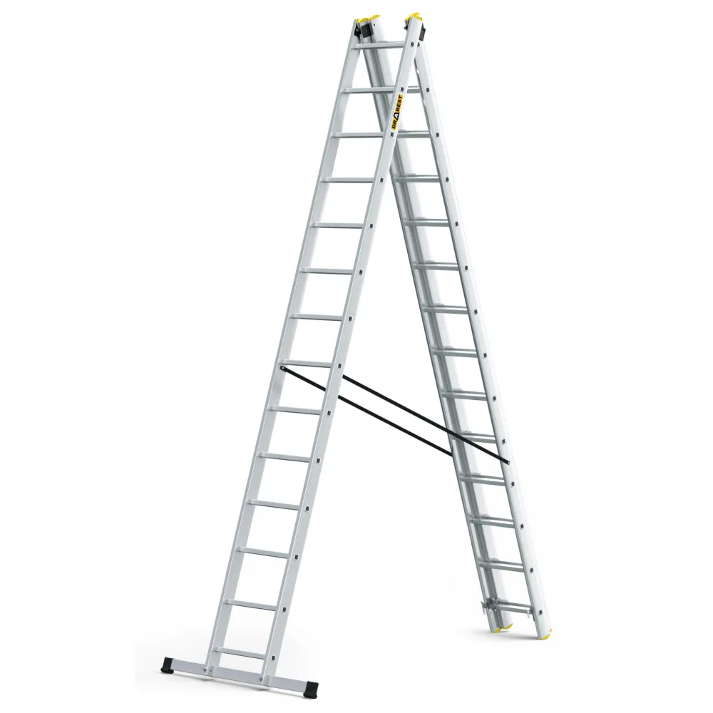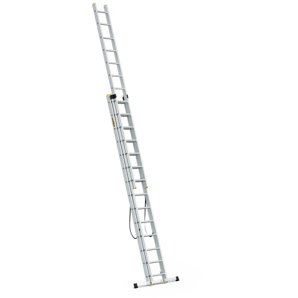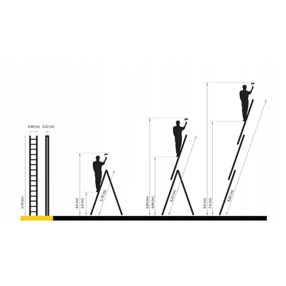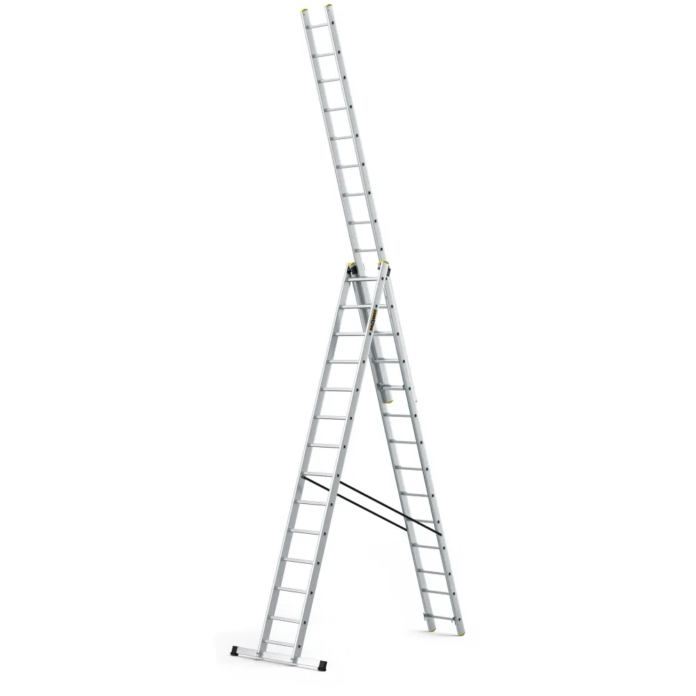 Profesionálny viacúčelový rebrík so stabilizátorom , 3x14 priečok, max. pracovná výška 9,62 m, nosnosť 150 kg. Certifikácia TÜV Rheinland, EN 131 pre profi použitie.