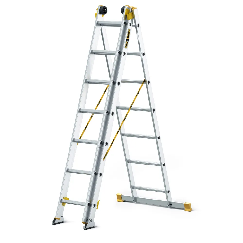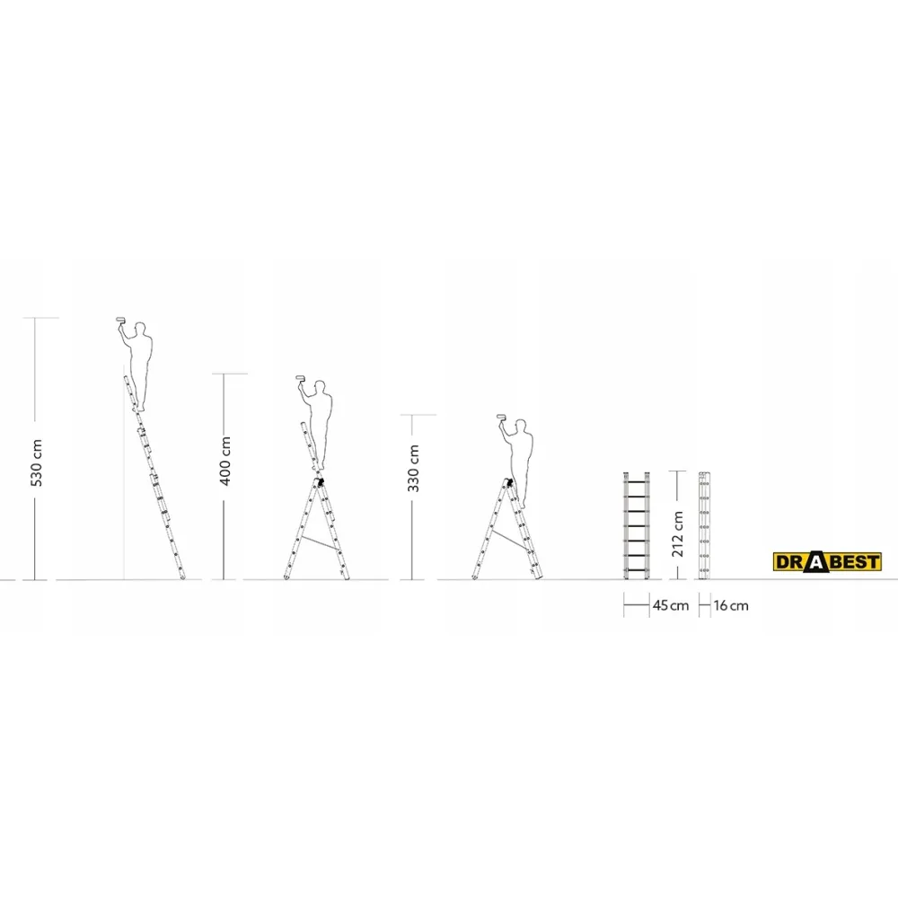 Hliníkový rebrík DRABEST DW3-7 MAX je vhodný na každodenné intenzívne používanie v priemysle, na stavbe a ďalších náročných odboroch vyžadujúcich nekompromisnú kvalitu. Rebrík spĺňa prísne bezpečnostné normy podľa EN 131.