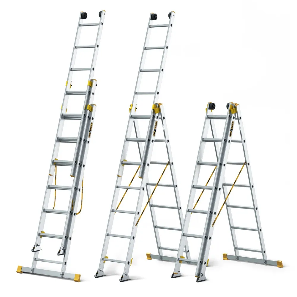 Hliníkový rebrík 3x9 priečok trojdielny DRABEST DW3-9 PRO