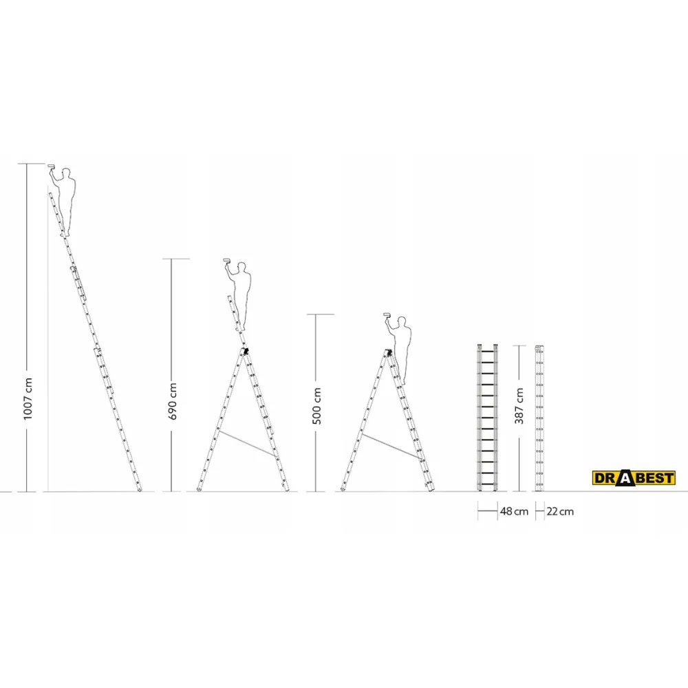 Hliníkový rebrík DRABEST DW3-13 MAX je vhodný na každodenné intenzívne používanie v priemysle, na stavbe a ďalších náročných odboroch vyžadujúcich nekompromisnú kvalitu. Rebrík spĺňa prísne bezpečnostné normy podľa EN 131.