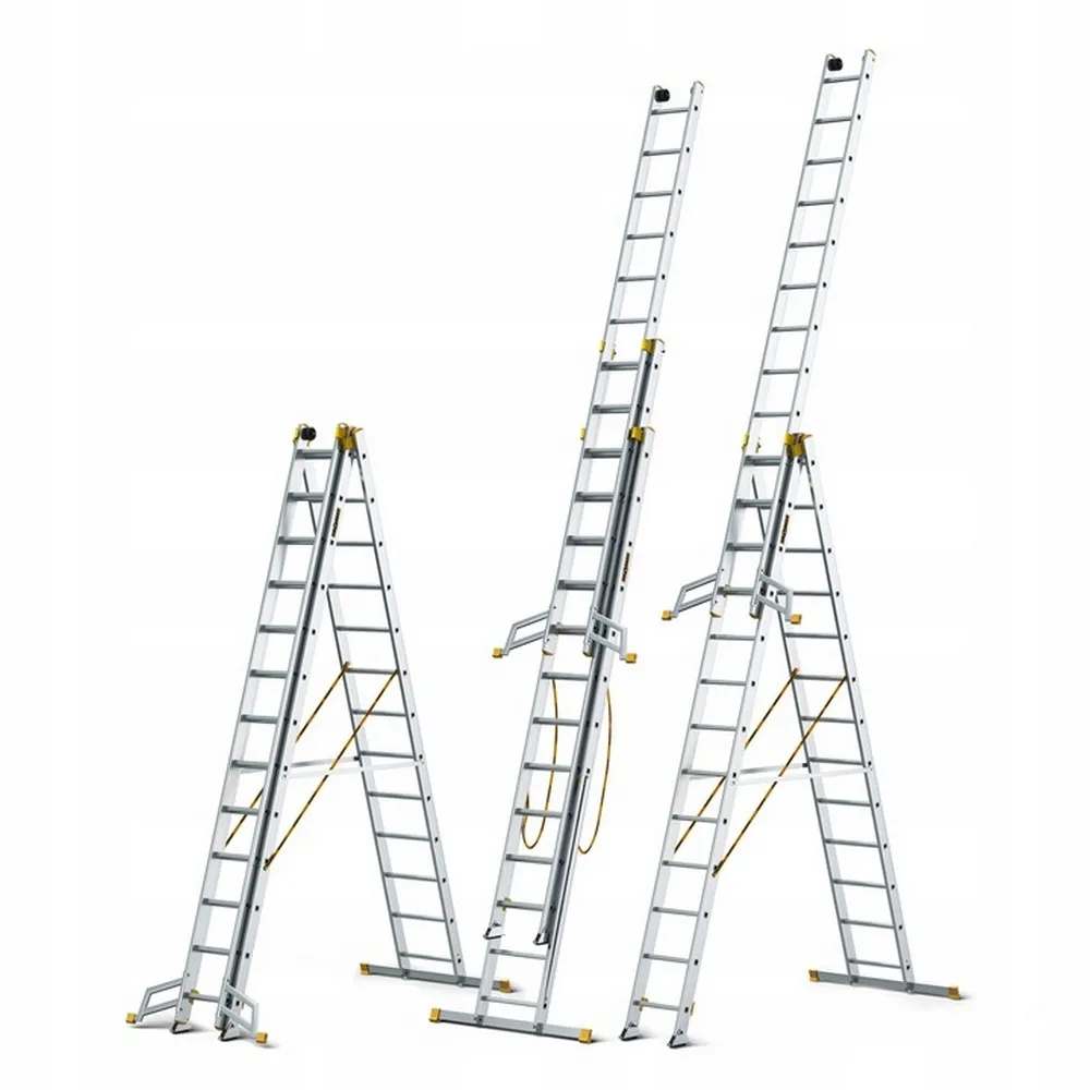 Hliníkový rebrík 3x15 priečok trojdielny DRABEST DW3-15 PRO