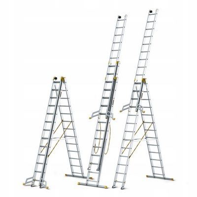 Profesionálny viacúčelový rebrík s dvoma stabilizátormi a bohatým príslušenstvom , 3x13 priečok, max. pracovná výška 10,07 m, nosnosť 150 kg. Certifikácia EN 131 pre profi použitie.