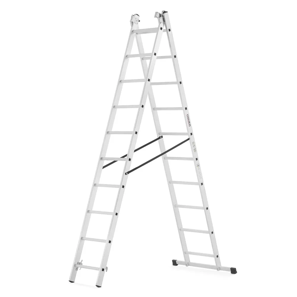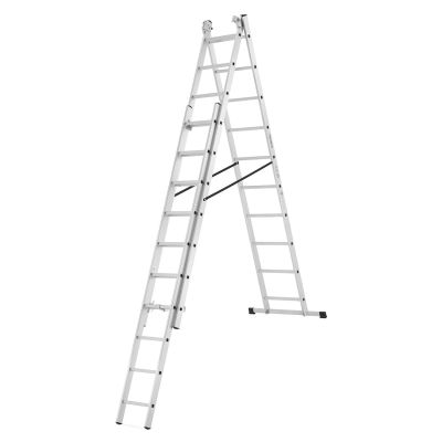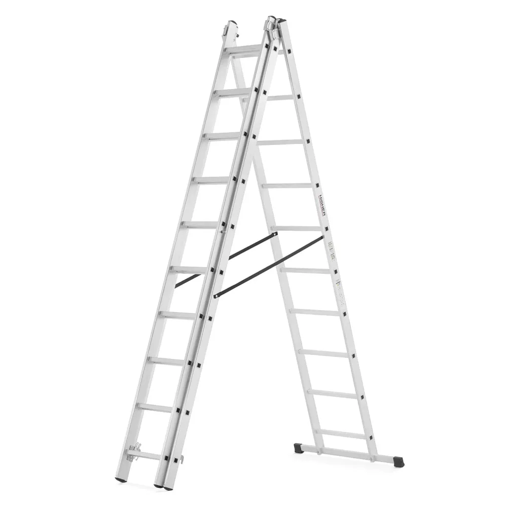 Viacúčelový a maximálne všestranný rebrík 3x10 priečok so stabilizátorom. Max. dĺžka 5,10 m, max. pracovná výška 6,04 m. domácnosť, záhradu, dielňu aj stavbu.