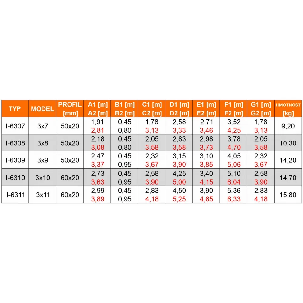 - Materiál: zosilnený hliníkový profil 60x20 mm