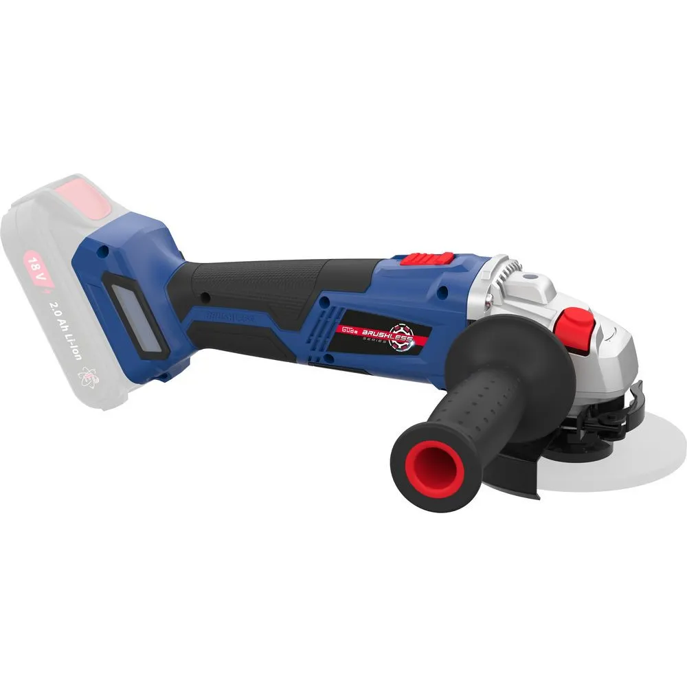 Akumulátorová uhlová brúska zo série akumulátorového náradia 18V E3. Silný vysokovýkonný motor. Ochrana proti preťaženiu pre dlhú životnosť....