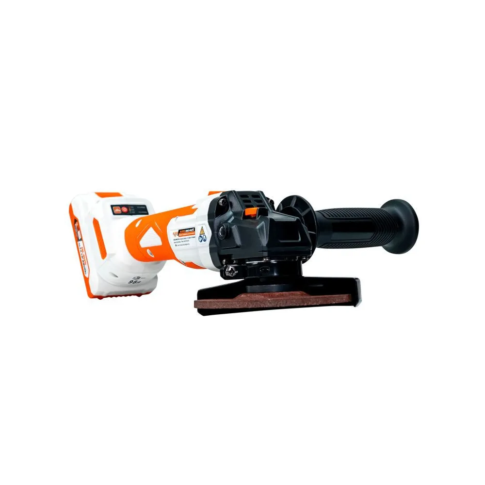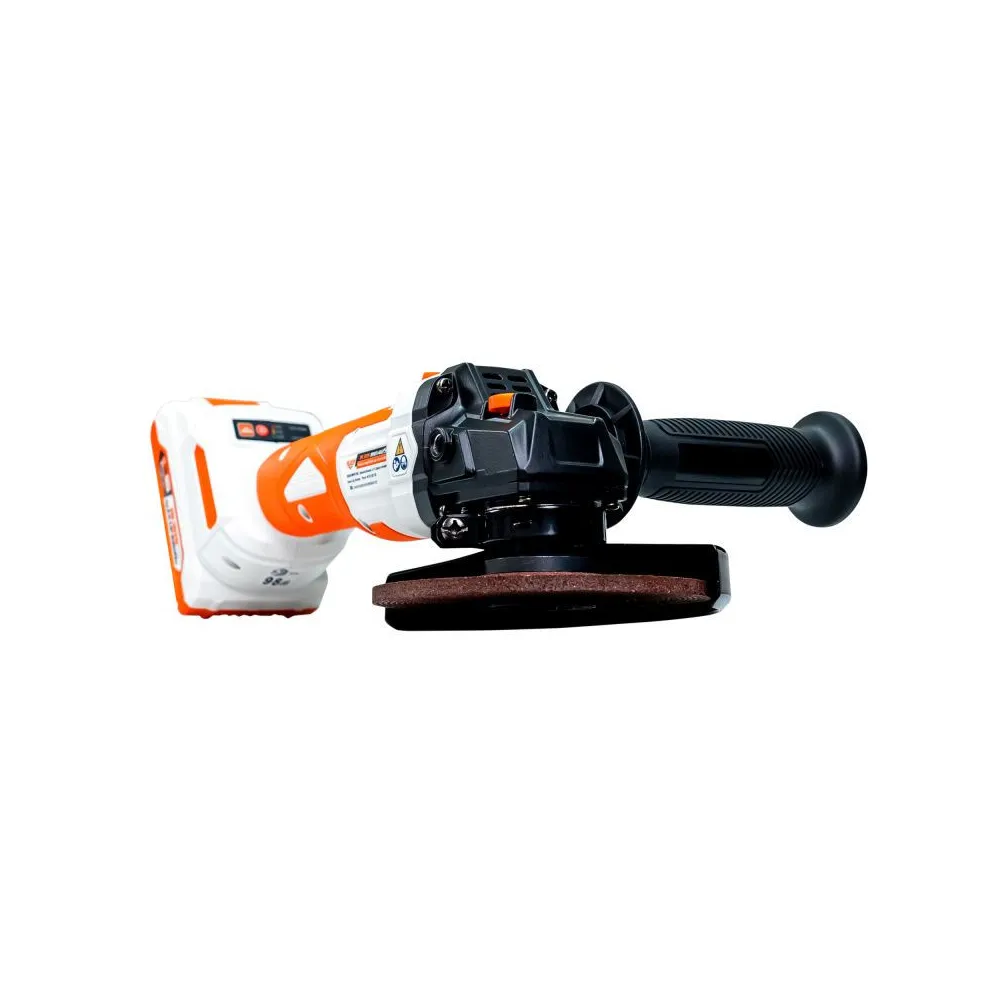 V balení sa nachádza 125 mm brúsny kotúč, prídavná rukoväť s 2 polohami nastavenia. Dodáva sa bez akumulátora a nabíjačky.