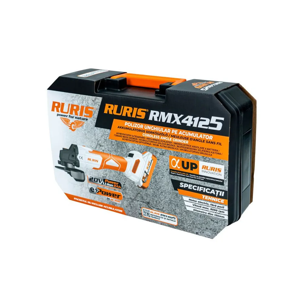 Uhlová brúska RMX4125 je napájaná akumulátorom , čo prináša značnú výhodu z hľadiska mobility a flexibility pri používaní. Bez obmedzenia napájacím káblom môže užívateľ voľne pracovať v ťažko dostupných priestoroch alebo vonku, kde nie je okamžitý prístup k zdroju elektrickej energie. Navyše moderné modely napájané akumulátormi poskytujú výkon porovnateľný s tými káblovými, čo umožňuje efektívne využitie náradia bez kompromisov vo výkone.