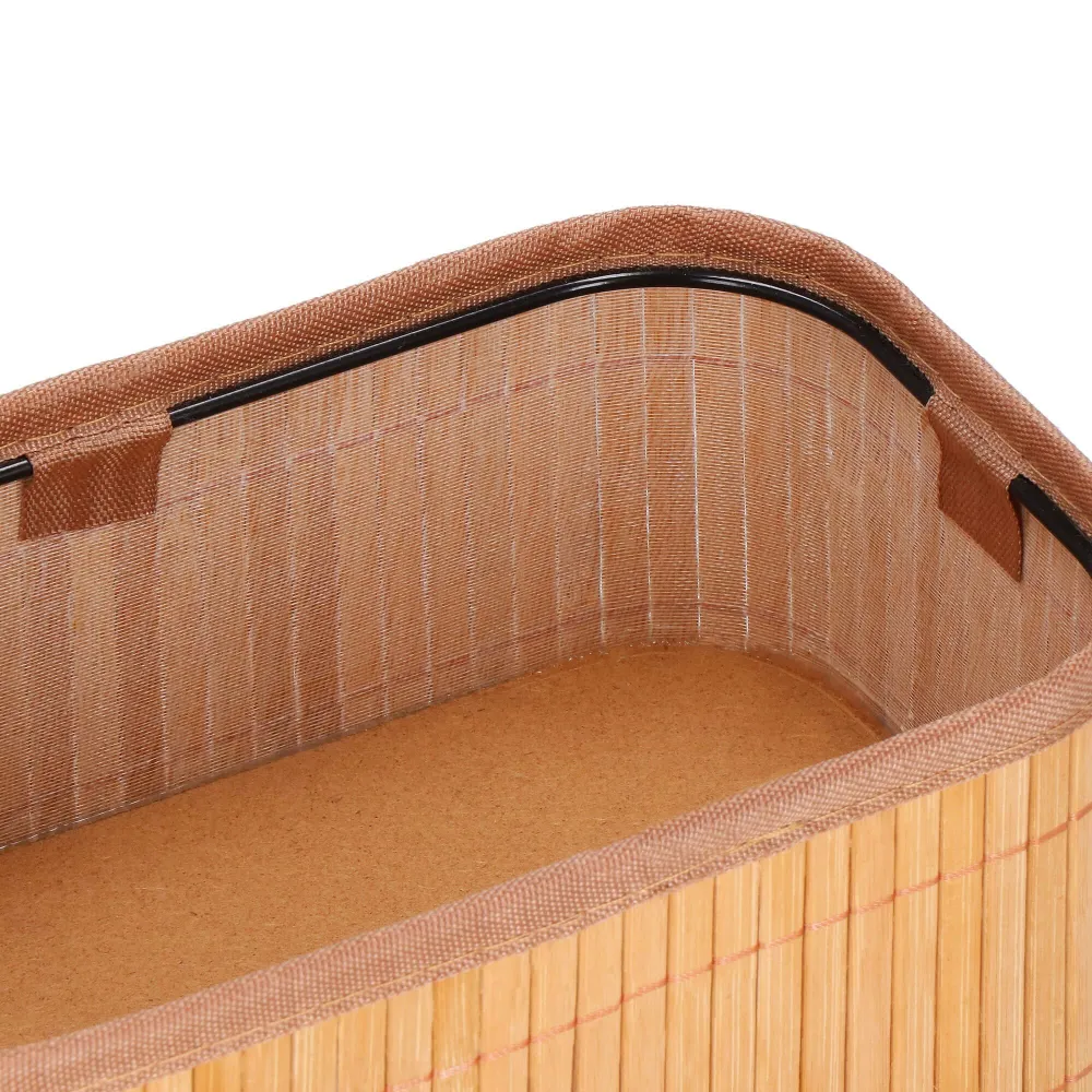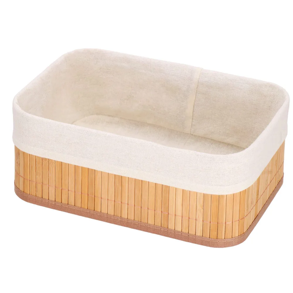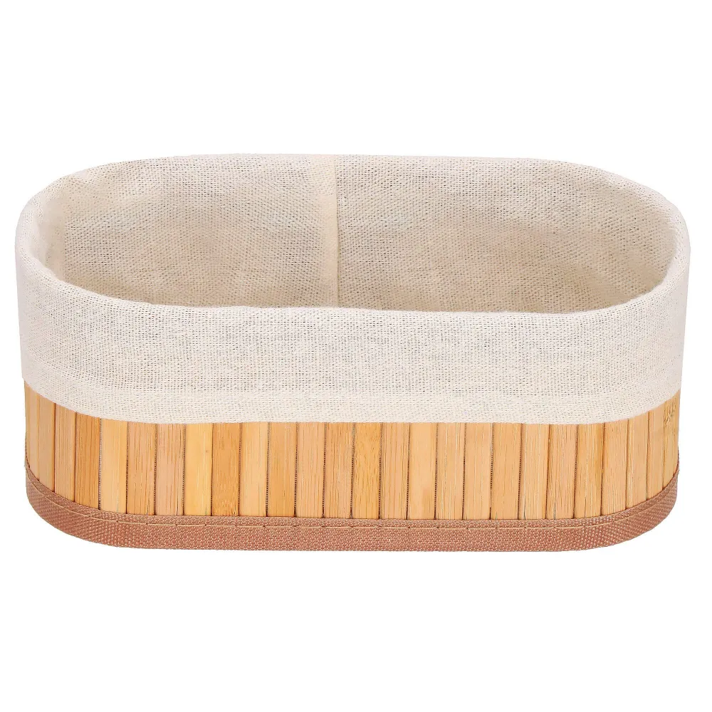 Súprava troch praktických organizérov v rôznych veľkostiach pomôže udržať poriadok v domácnosti štýlovým spôsobom. Kombinácia bambusu a textilnej podšívky pôsobí útulne a hodí sa do kúpeľne, spálne aj obývacieho priestoru. Pevné dno zaisťuje stabilitu, vystužený okraj drží tvar a snímateľná látka umožňuje ľahkú údržbu.