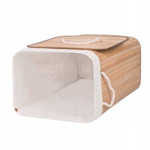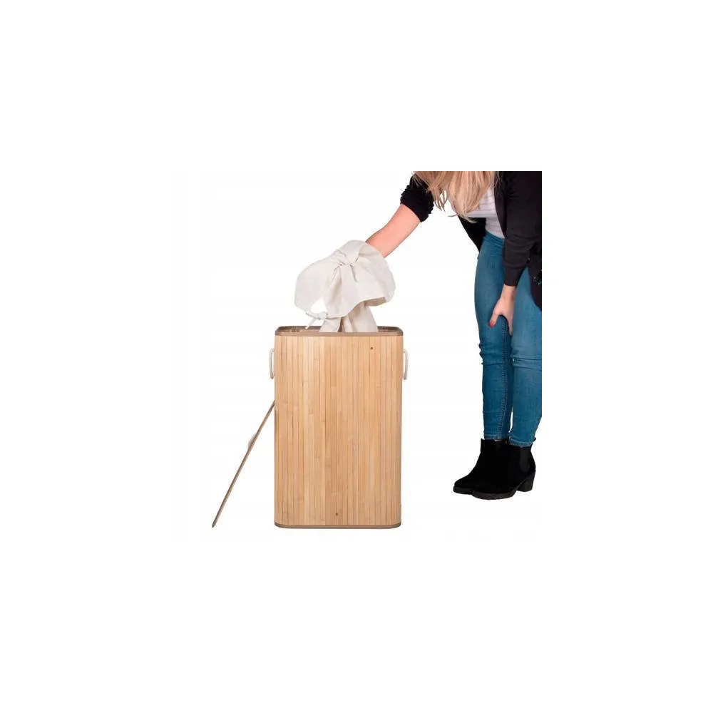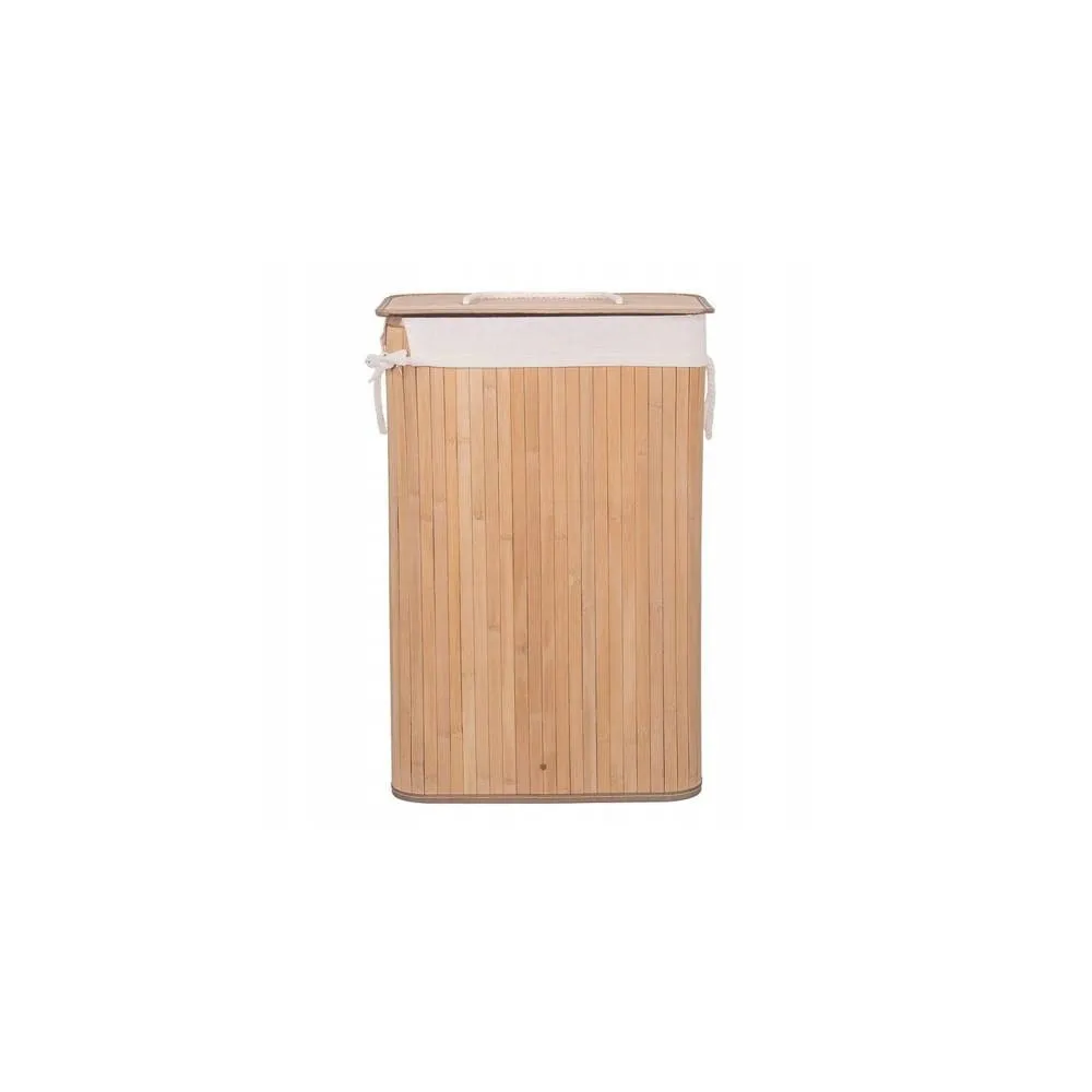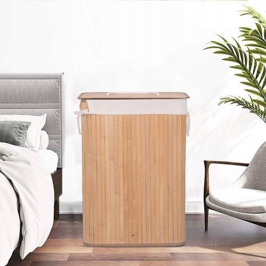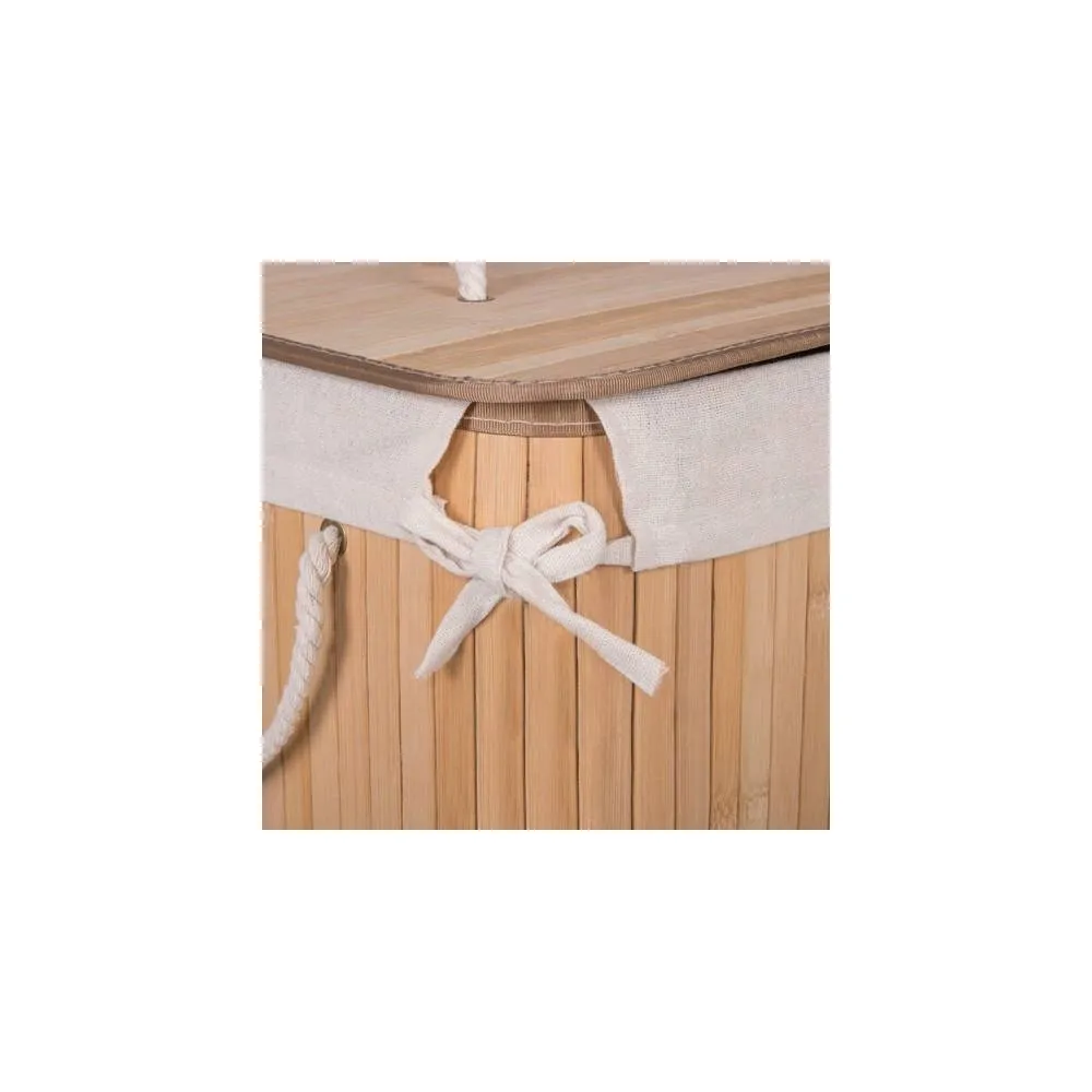 Uzatvárateľný klopa umožňuje schovať obsah, teda oblečenie určené na pranie. Veko aj bočné steny koša sú opatrené šnúrkami , ktoré uľahčujú prenášanie prvku a využívanie jeho vnútra. Košík je vyrobený z kvalitného prírodného bambusu , ktorý je ekologický a predovšetkým ľahký. Jeho objem je až 72l , takže sa doňho zmestí veľké množstvo vecí.