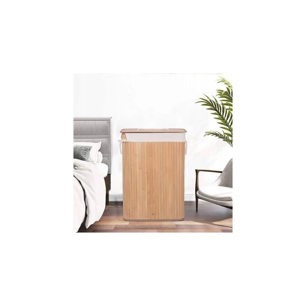 Kôš na bielizeň dvojdielny 100l SPRINGOS LUMORA bambus prírodný