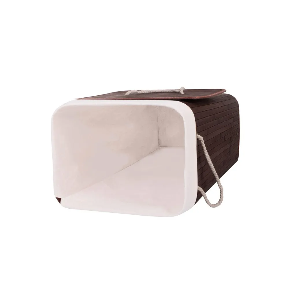 Uzatvárateľný klopa umožňuje schovať obsah, teda oblečenie určené na pranie. Veko aj bočné steny koša sú opatrené šnúrkami , ktoré uľahčujú prenášanie prvku a využívanie jeho vnútra. Košík je vyrobený z kvalitného prírodného bambusu , ktorý je ekologický a predovšetkým ľahký. Jeho objem je až 72l , takže sa doňho zmestí veľké množstvo vecí.