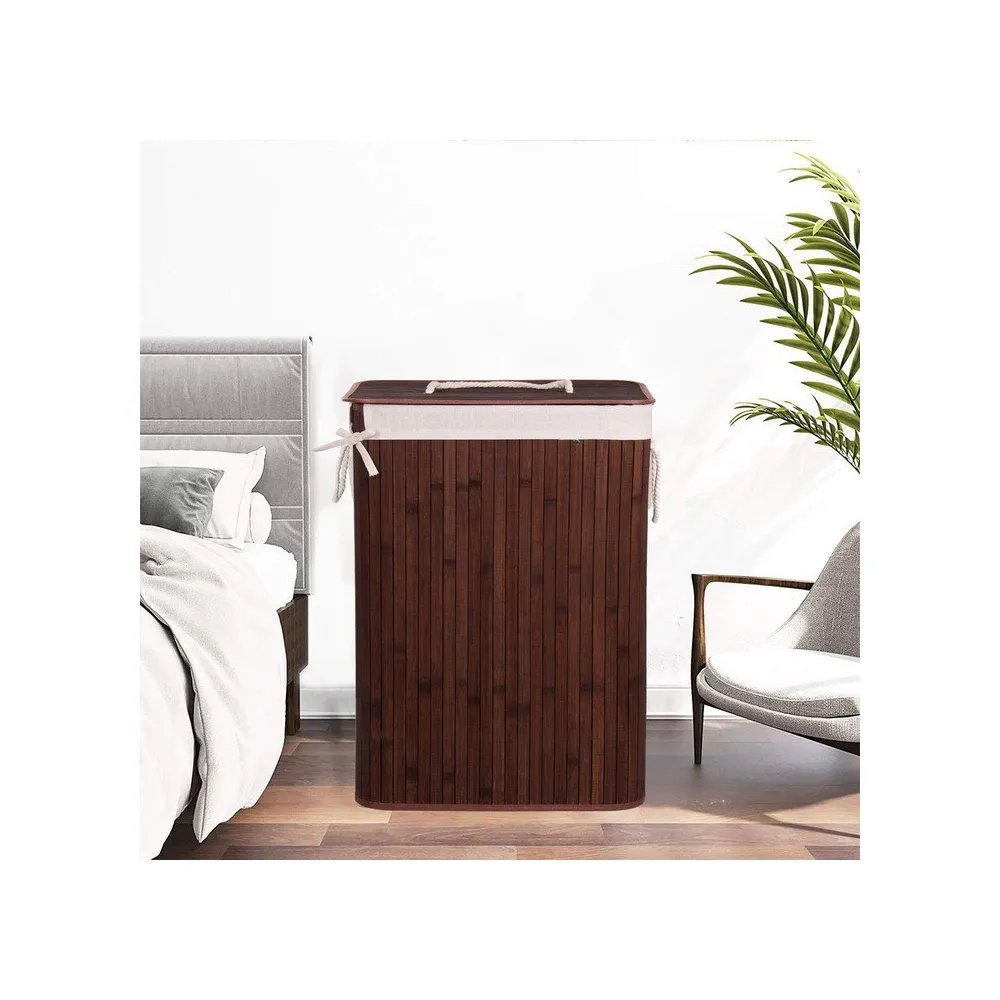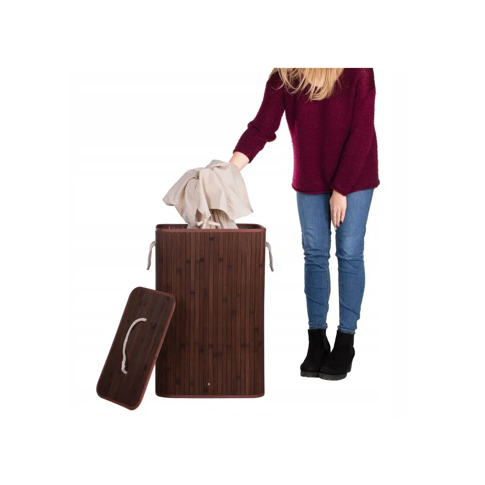 Bambusový kôš na bielizeň Springos s objemom 72l je praktickým a funkčným doplnkom každého interiéru. Kôš na zber špinavej bielizne a spodnej bielizne je vyrobený z prírodného bambusu v tmavo hnedej farbe. Ľahká konštrukcia a štýlový dizajn, vyberateľná vnútorná taška neabsorbuje vlhkosť a pachy, veľký objem, praktické madlo.