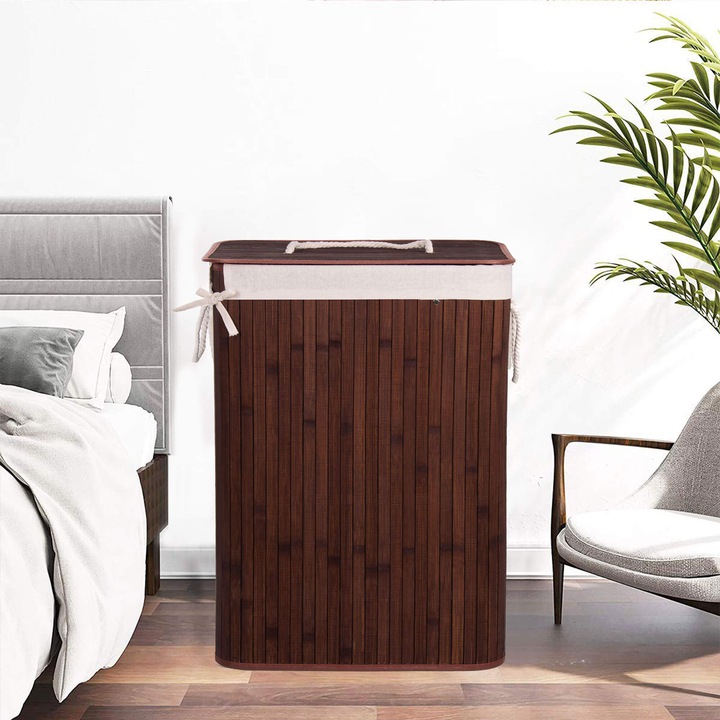 Bambusový kôš na bielizeň Springos s objemom 72l je praktickým a funkčným doplnkom každého interiéru . Kôš na zber špinavej bielizne a spodnej bielizne je vyrobený z prírodného bambusu v tmavo hnedej farbe. Ľahká konštrukcia a štýlový dizajn, vyberateľná vnútorná taška neabsorbuje vlhkosť a pachy, veľký objem, praktické madlo.