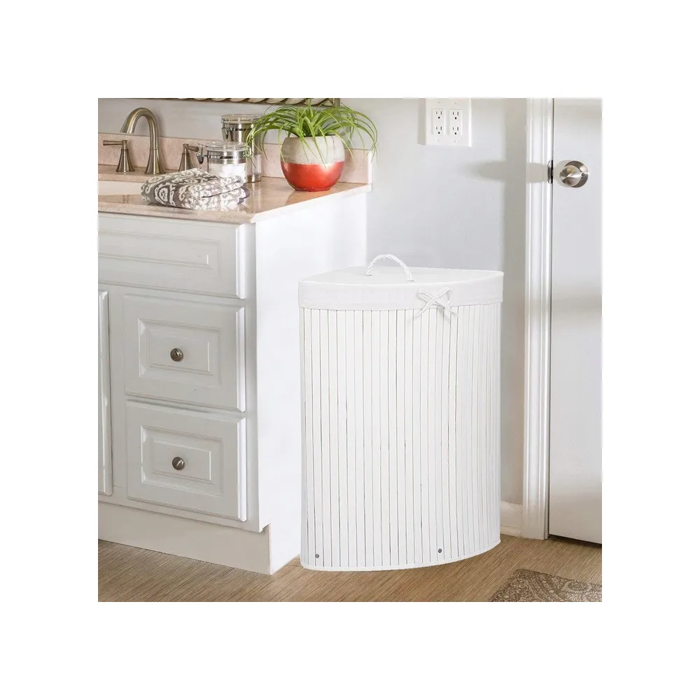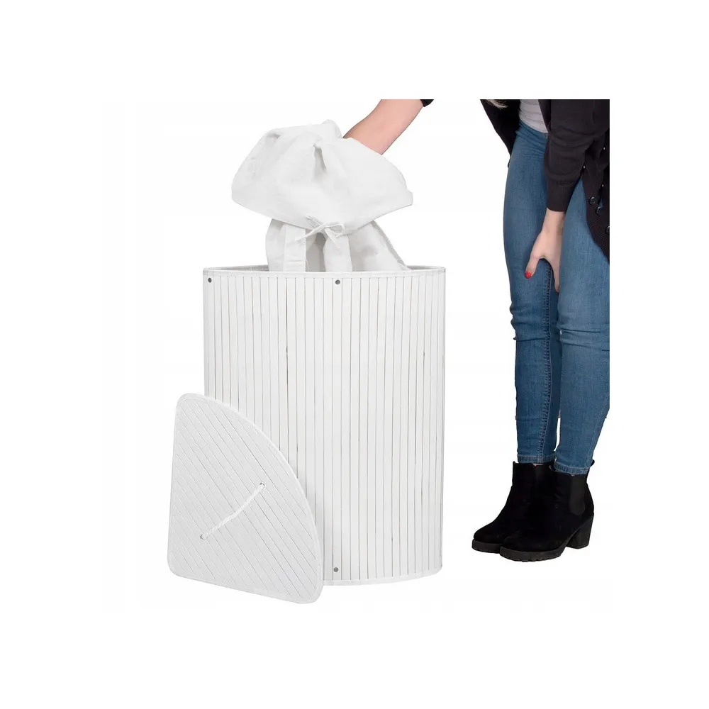 Rohový bambusový box na bielizeň Springos s objemom 73l je praktickým a funkčným doplnkom každého interiéru. Kôš na zber špinavej bielizne a spodnej bielizne je vyrobený z prírodného bambusu v bielej farbe. Ľahká konštrukcia a štýlový dizajn, vyberateľná vnútorná taška neabsorbuje vlhkosť a pachy, rukoväte v podobe lana.