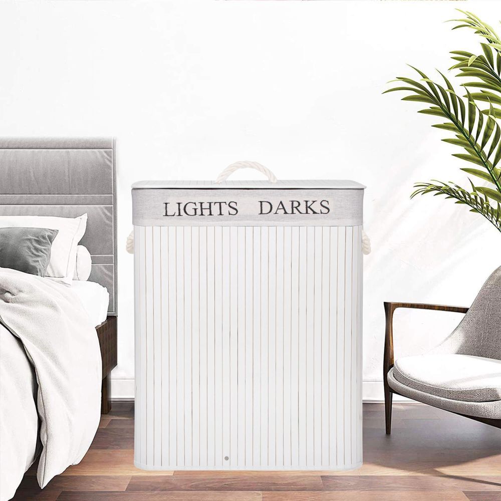 Kôš na bielizeň 100l, dvojdielny SPRINGOS BAMBUS biely
