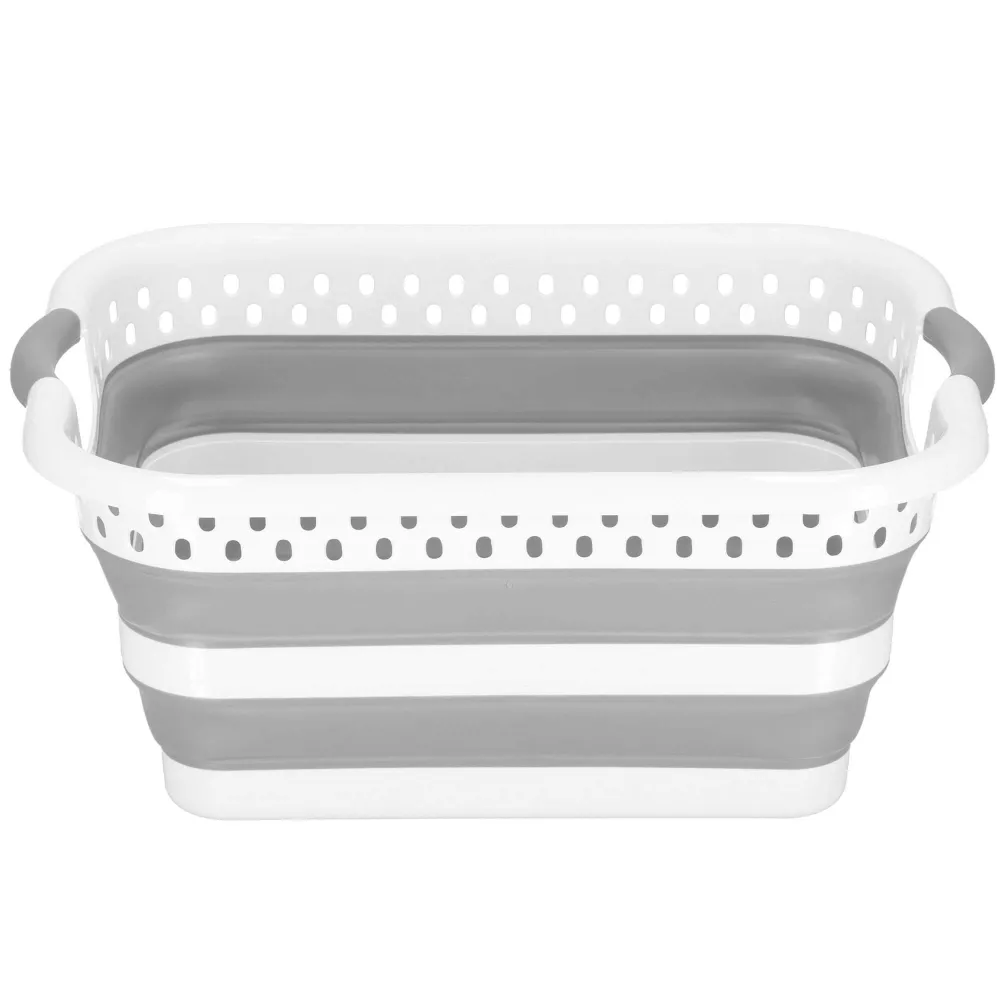 Skladací kôš s ušami s objemom 24l . Pevná a odolná konštrukcia, moderný design. Nízka hmotnosť, ľahké skladovanie, protišmykové rukoväte. Použitá konštrukcia umožňuje rýchle skladanie a rozkladanie. Praktický a funkčný doplnok na bielizeň do kúpeľne, využitie ale nájde aj v záhrade alebo pri kempovaní.