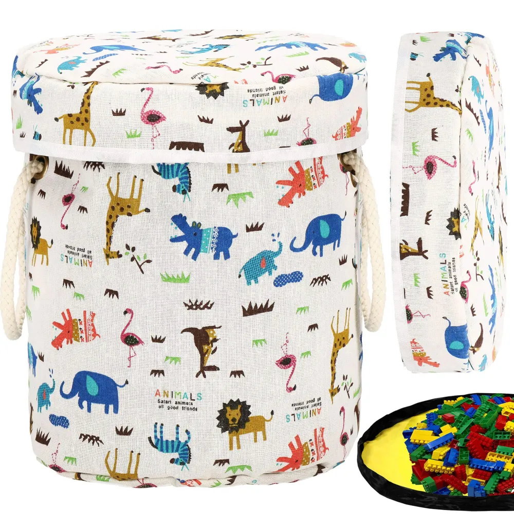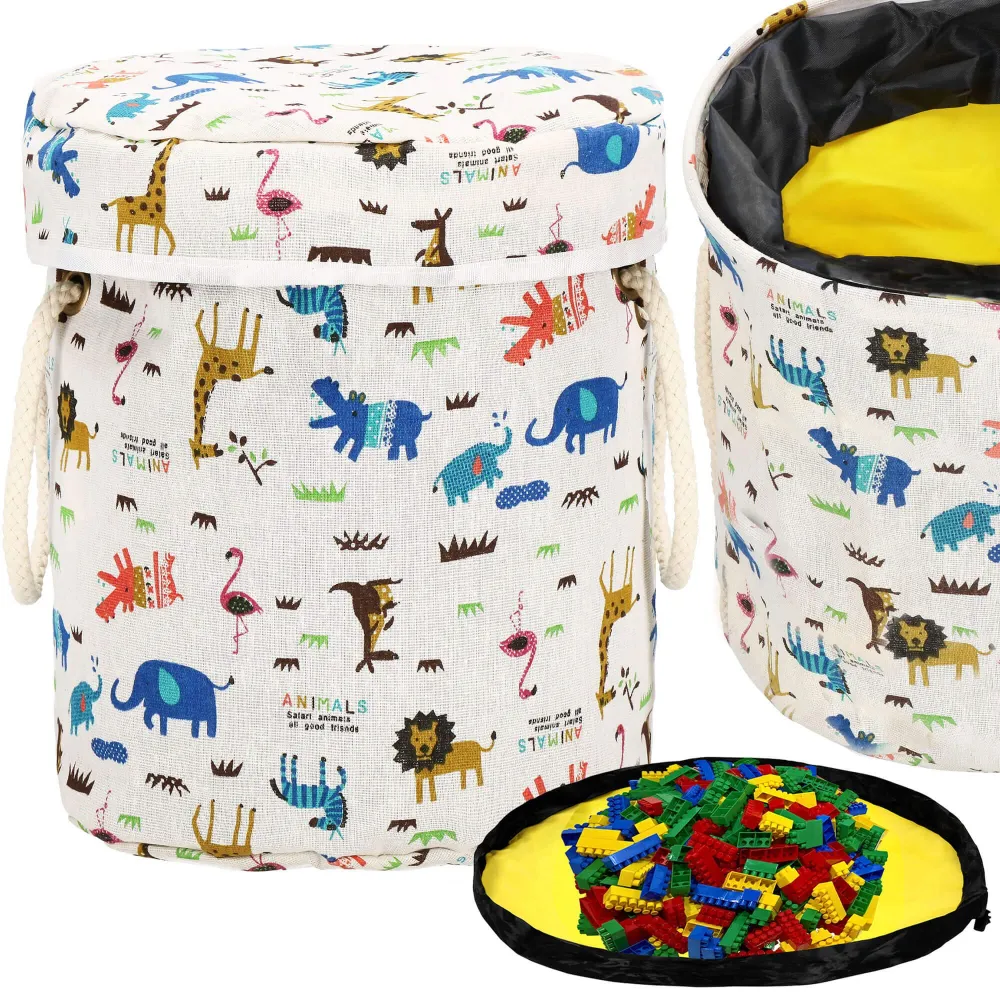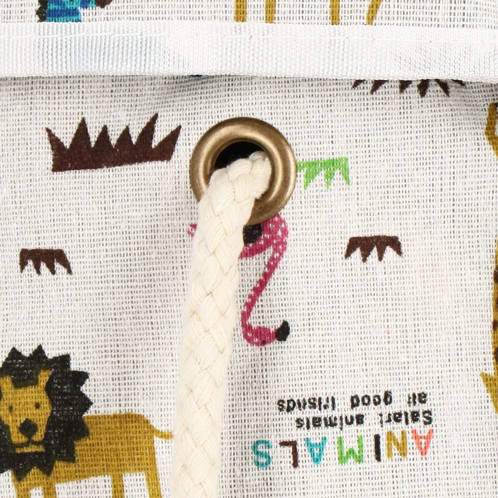 Textilný kôš/box vhodný do detskej izby. Vnútorná vložka, veko, rozmery 30x30 cm, objem 27 l. Ideálne na uloženie každodenných vecí ako sú detské hračky, oblečenie, bielizeň, uteráky, deky a mnoho ďalšieho. Roztomilý dizajn s motívom Safari, možnosť zloženia, praktické lanové uši pre lepšiu manipuláciu, uzatvárateľné veko.