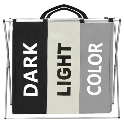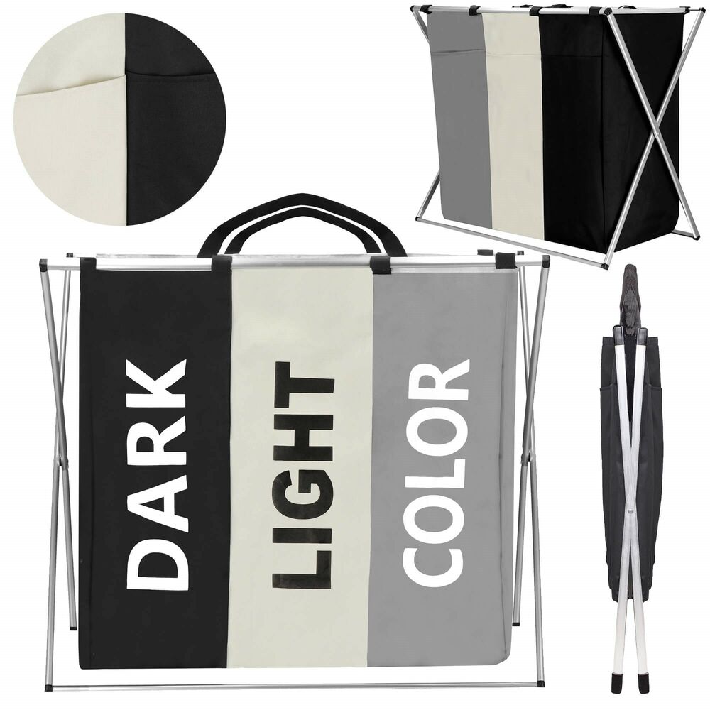 Skladací kôš na triedenie špinavej bielizne s kapacitou 146 l má tri oddiely pre ľahké triedenie farebnej, bielej a čiernej bielizne. Ľahký hliníkový rám je možné zložiť naplocho, textilná časť z odolného polyesteru je nepremokavá a pripevnená suchými zipsami. Každú komoru je možné uzavrieť sťahovacou šnúrkou so sieťovinou. Praktické madlá umožňujú ľahké prenášanie. Moderný design zapadne do každej kúpeľne.