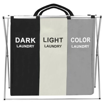 Skladací kôš na triedenie špinavej bielizne so stojanom a kapacitou 146 l ponúka 3 oddiely pre ľahké rozdelenie bielizne. Ľahký hliníkový rám je možné zložiť naplocho, textilná časť je odnímateľná vďaka suchým zipsom. Polyesterový materiál s nepremokavou vrstvou odoláva vlhkosti. Praktické madlá umožňujú ľahké prenášanie. Moderný design sa hodí do každej kúpeľne.