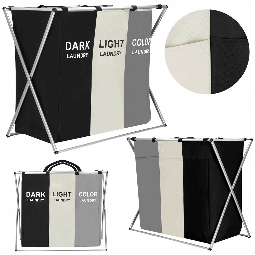 Trojkomorový dizajn umožňuje jednoduché rozdelenie oblečenia podľa farby – tmavé, svetlé a farebné – čo pomáha chrániť bielizeň pred nechceným zafarbením počas prania. Kôš je navyše skladací , čo znamená, že keď ho nepotrebujete, ľahko ho zložíte naplocho a uskladníte bez zaberania miesta.