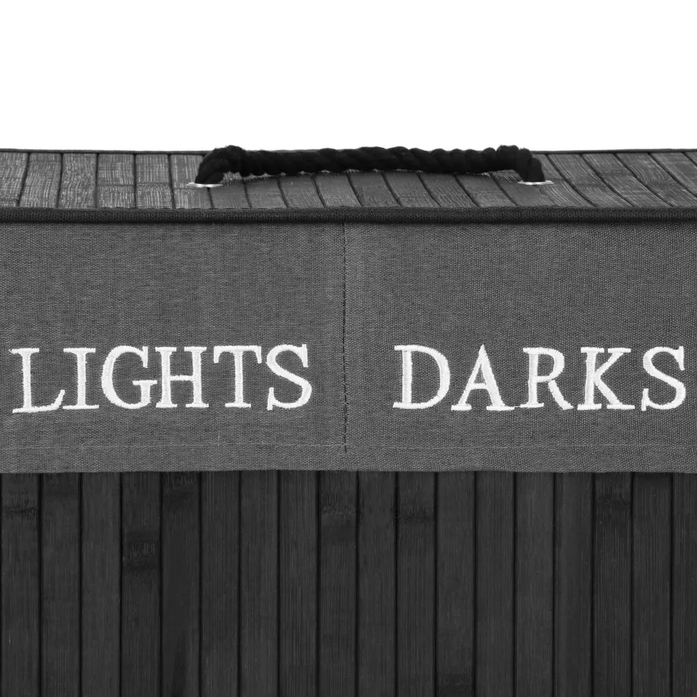 Kôš na triedenie špinavej bielizne s objemom 100 litrov ponúka praktické riešenie pre domácnosť. Kôš s dvoma oddielmi uľahčuje triedenie svetlej a tmavej bielizne. Vyberateľná vnútorná taška zo zmesi polyesteru a bavlny sa ľahko perie. Moderný dizajn, bambusový materiál šetrný k životnému prostrediu a lanové madlá z neho robia ľahký, praktický a funkčný doplnok každej kúpeľne.