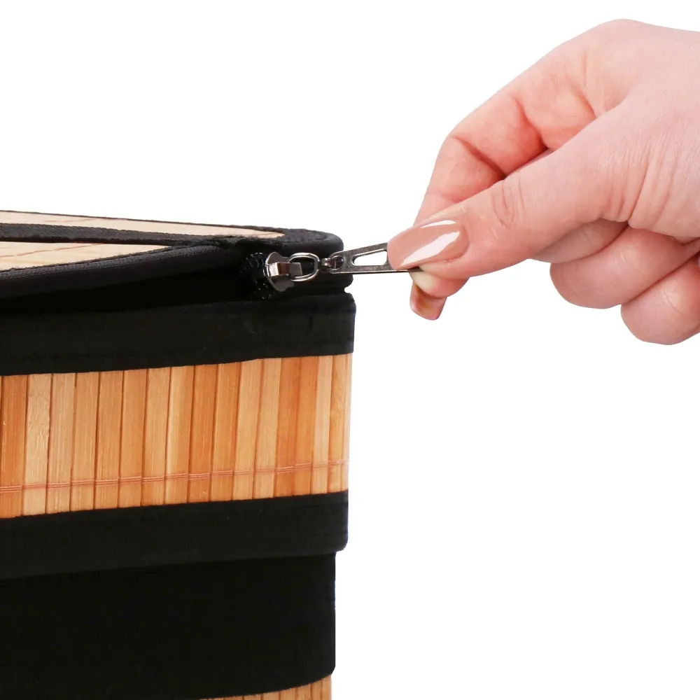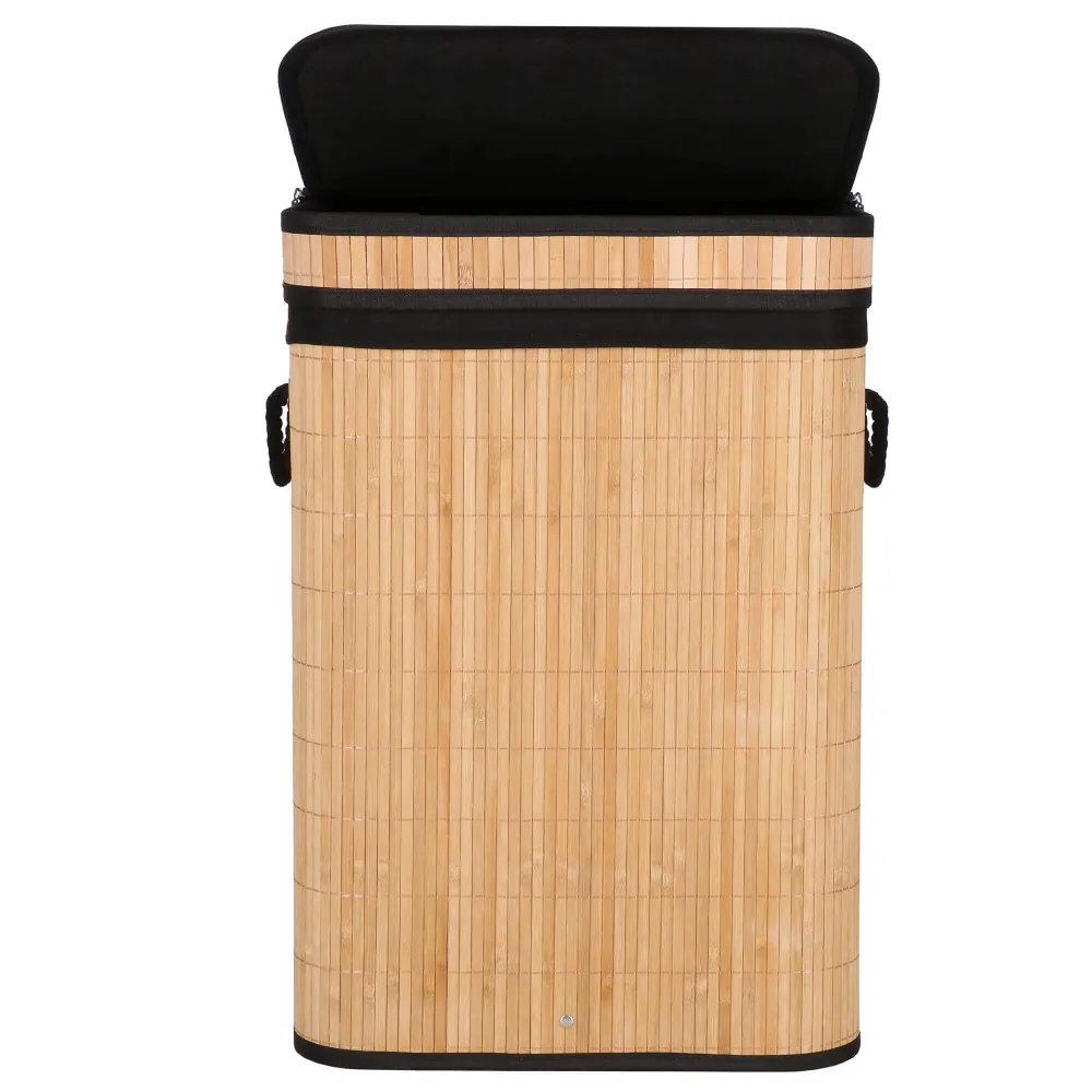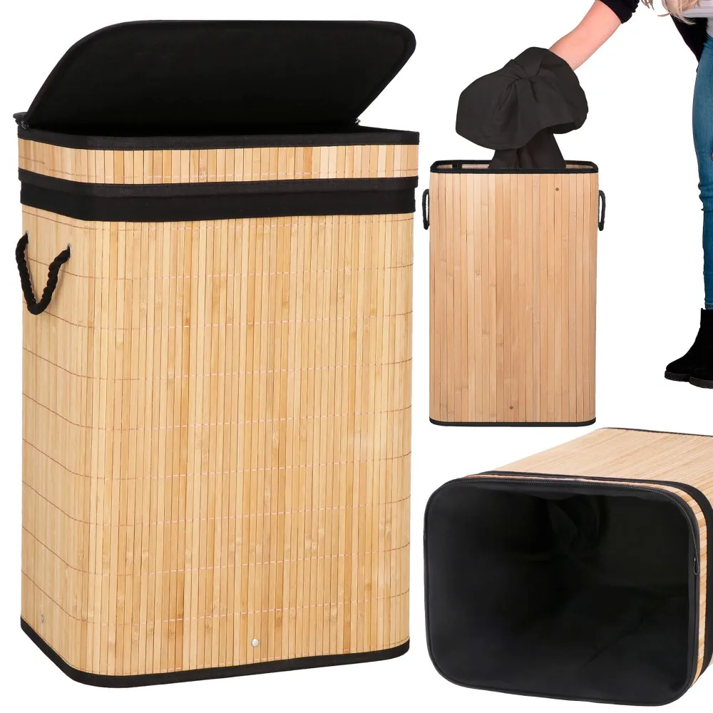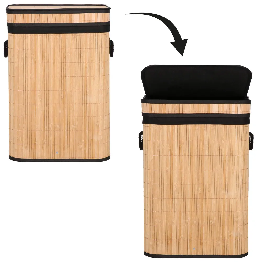 Kôš na triedenie špinavej bielizne s objemom 72 litrov ponúka praktické riešenie pre domácnosť. Vyberateľná vnútorná taška zo zmesi polyesteru a bavlny sa ľahko perie. Moderný dizajn, bambusový materiál šetrný k životnému prostrediu a lanové madlá z neho robia ľahký, praktický a funkčný doplnok každej kúpeľne.